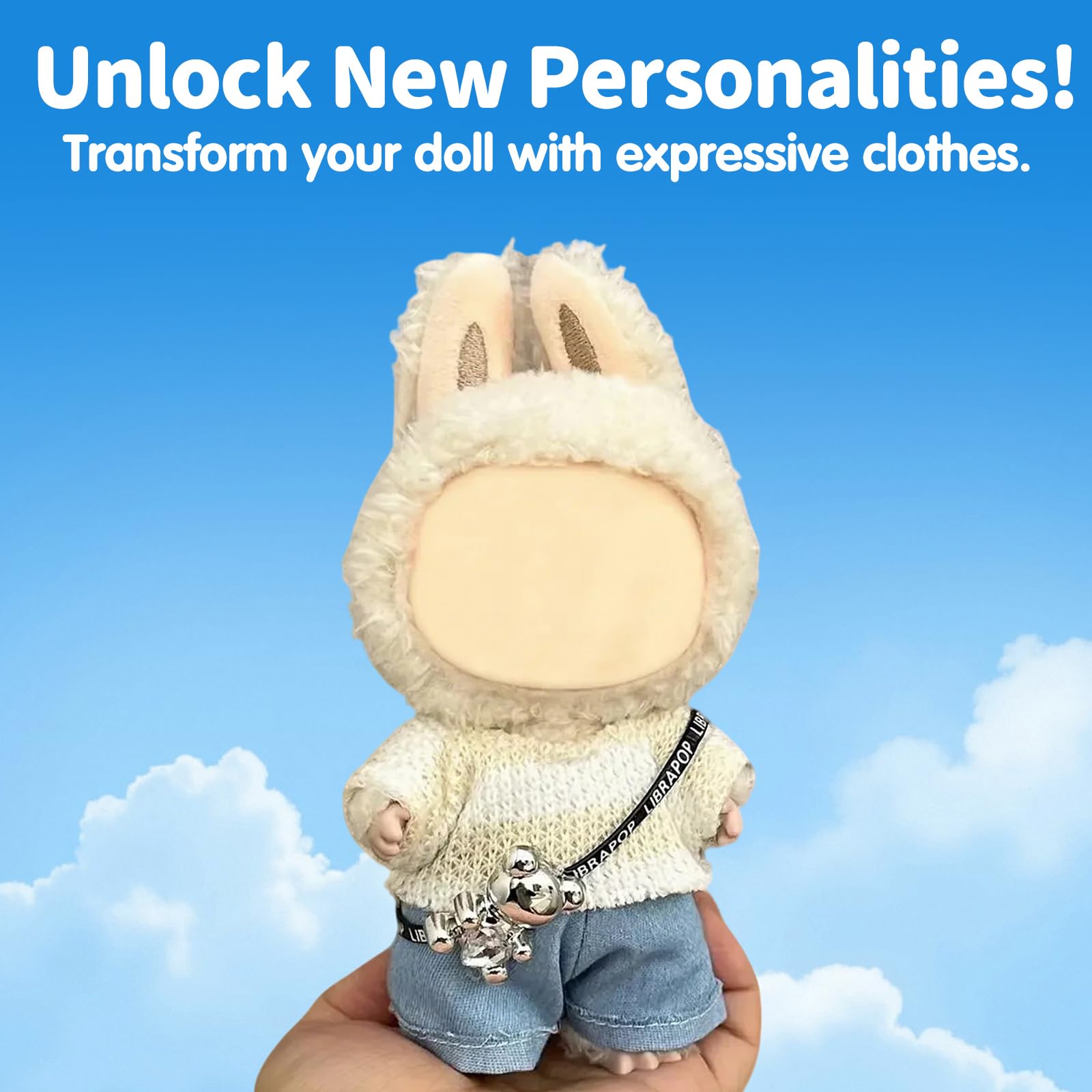 17cm Doll Clothes(NO Doll), Cute Dolls Outfit Accessories with Sweater + Denim Jeans + Pants, Small Kawaii Clothes Set for Dolls(Style 4)