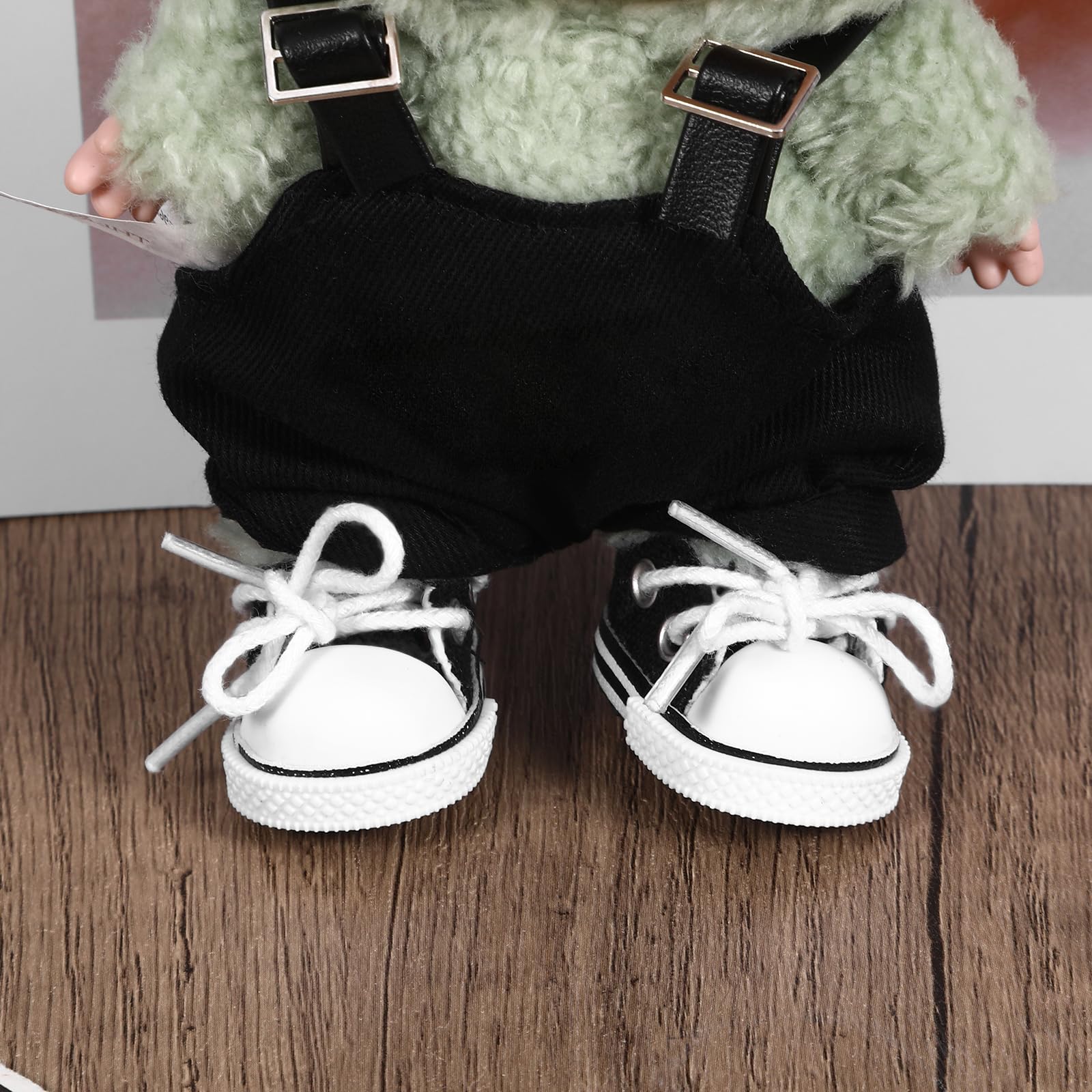 2 Pcs Mini Doll Shoes for 17cm Dolls, Cute Black & Pink Canvas Sneakers, 5.9in Doll Accessories, Doll Not Included