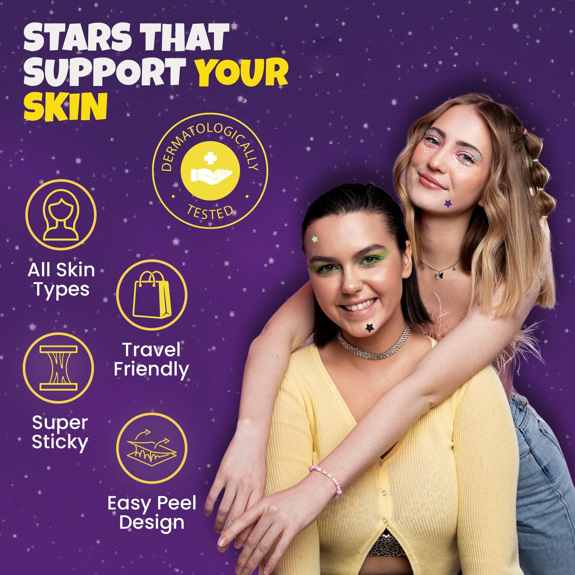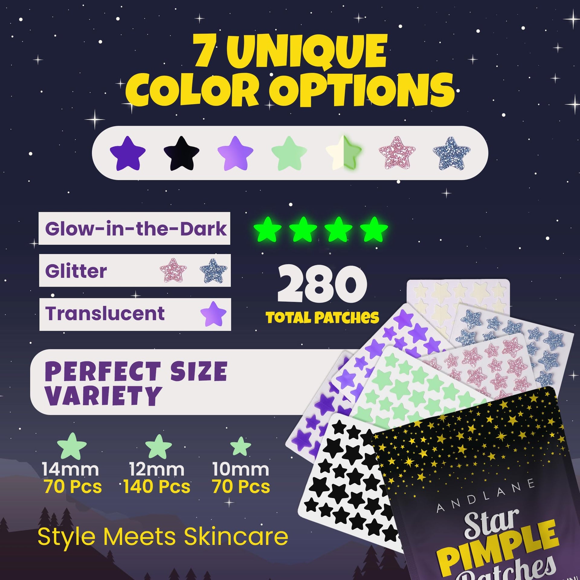 - Fun Star Designs: These cute star-shaped hydrocolloid patches add a fun twist to your skincare routine. Choose from regular, glitter, glow-in-the-dark, or translucent options in 7 vibrant colors—black, blue, green, white, pink, purple, and translucent—to brighten your day!