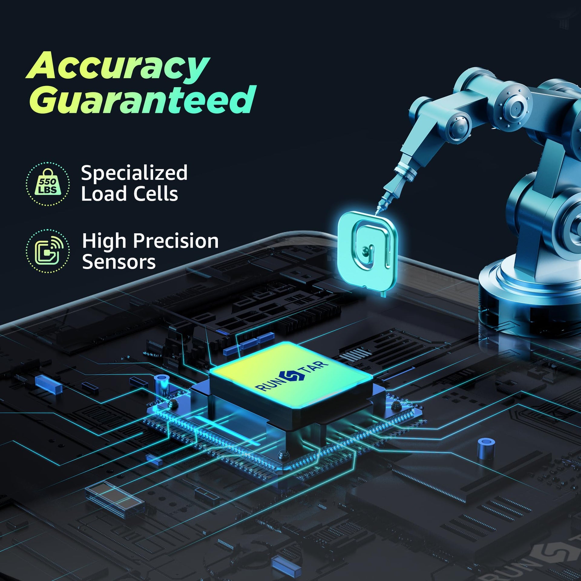 - Where Capacity Meets Precision Equipped with specialized load cells, this RunStar digital scale up to an extra high capacity (550lb /250kg). Which have passed 100,000 times sensor performance tests, delivering accurate readings in 1lb /0.5kg increments
