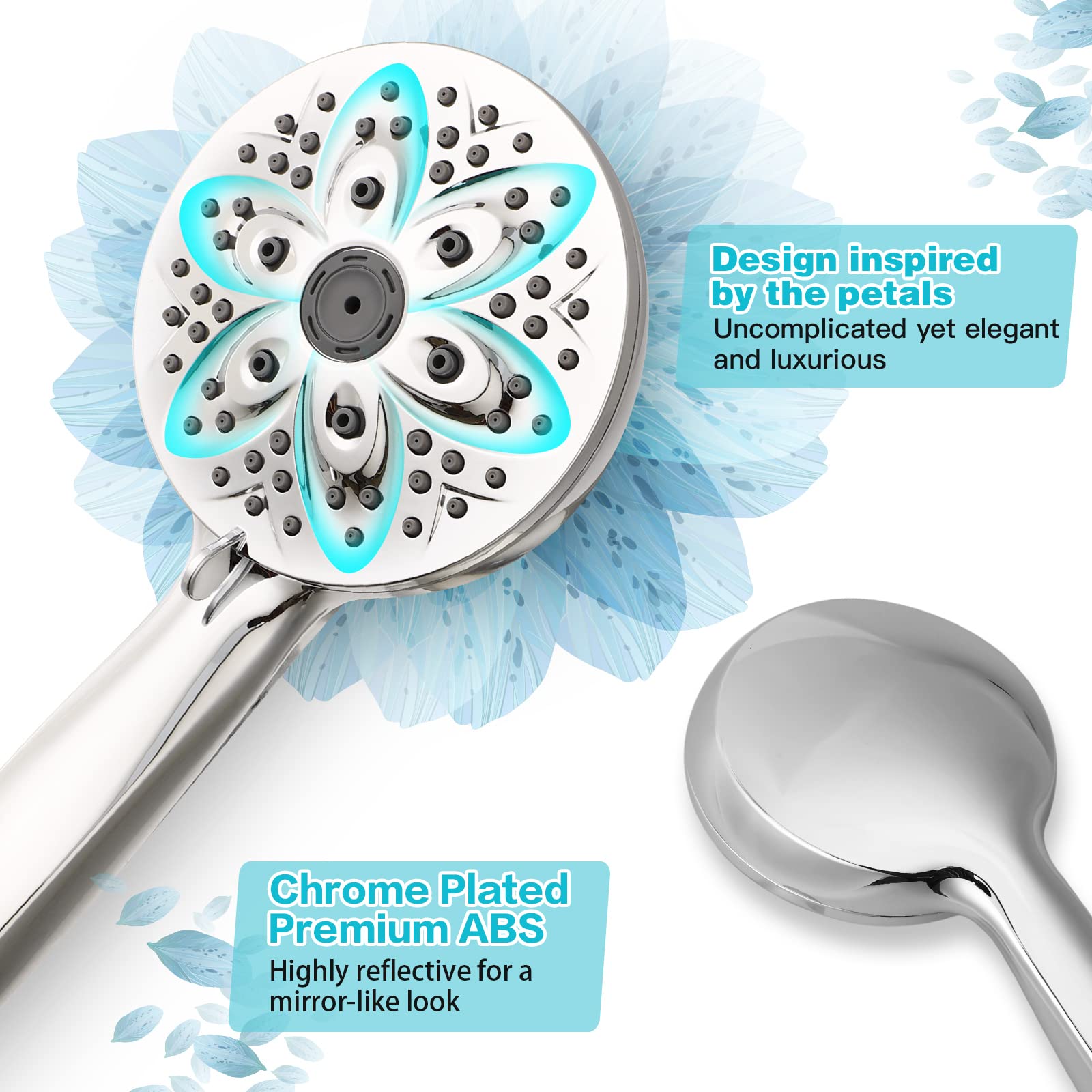 - Superior Material & Anti-clog Nozzels: This handheld shower head is crafted from high-quality ABS material, which makes it lightweight, rust-proof, and fade-proof. 4.7 Inch wide panel provides a comfortable showering experience with 6 changeable shower patterns. The anti-clog silicone nozzles prevent lime and hard water buildup, bacterial growth, and ensure a clean and healthy shower for you and your family