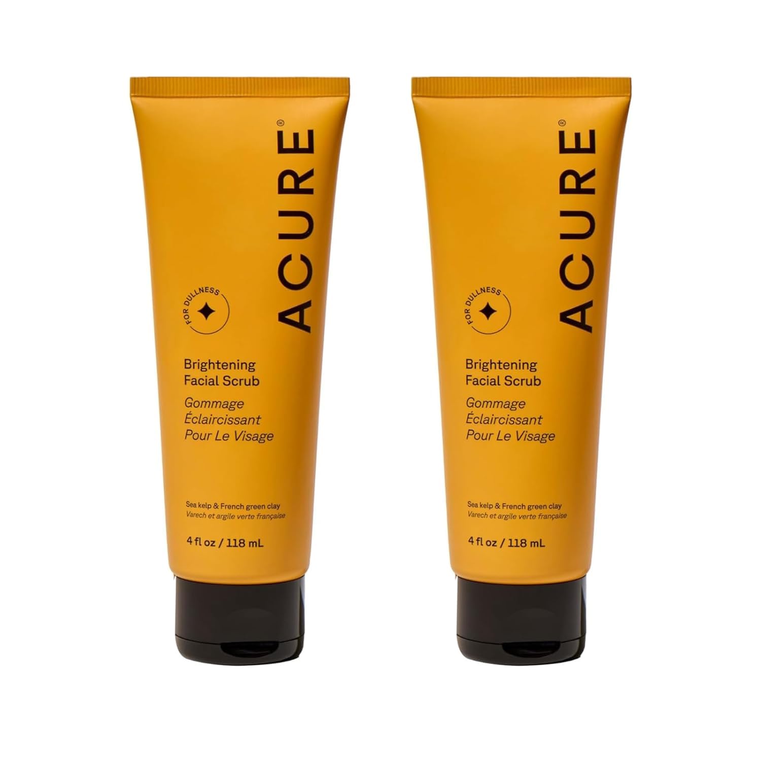 - CLEANSING AND EXFOLIATING FACIAL SCRUB - Acure Brightening Facial Scrub buffs away dull, dead skin cells with finely ground botanicals to reveal smoother, more radiant-looking skin