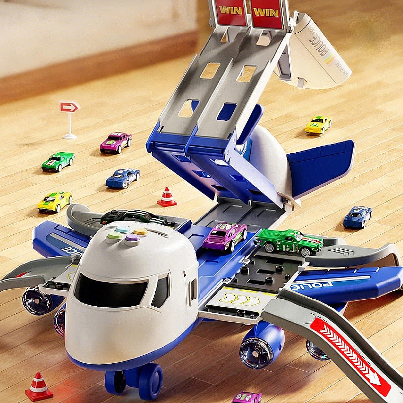 Airplane Toy Race Track Playset for Kids – Foldable 4-Layer Transport Plane with 6 Cars, Toddler Car Ramp Toy for Boys & Girls Ages 3-6, Birthday Gift