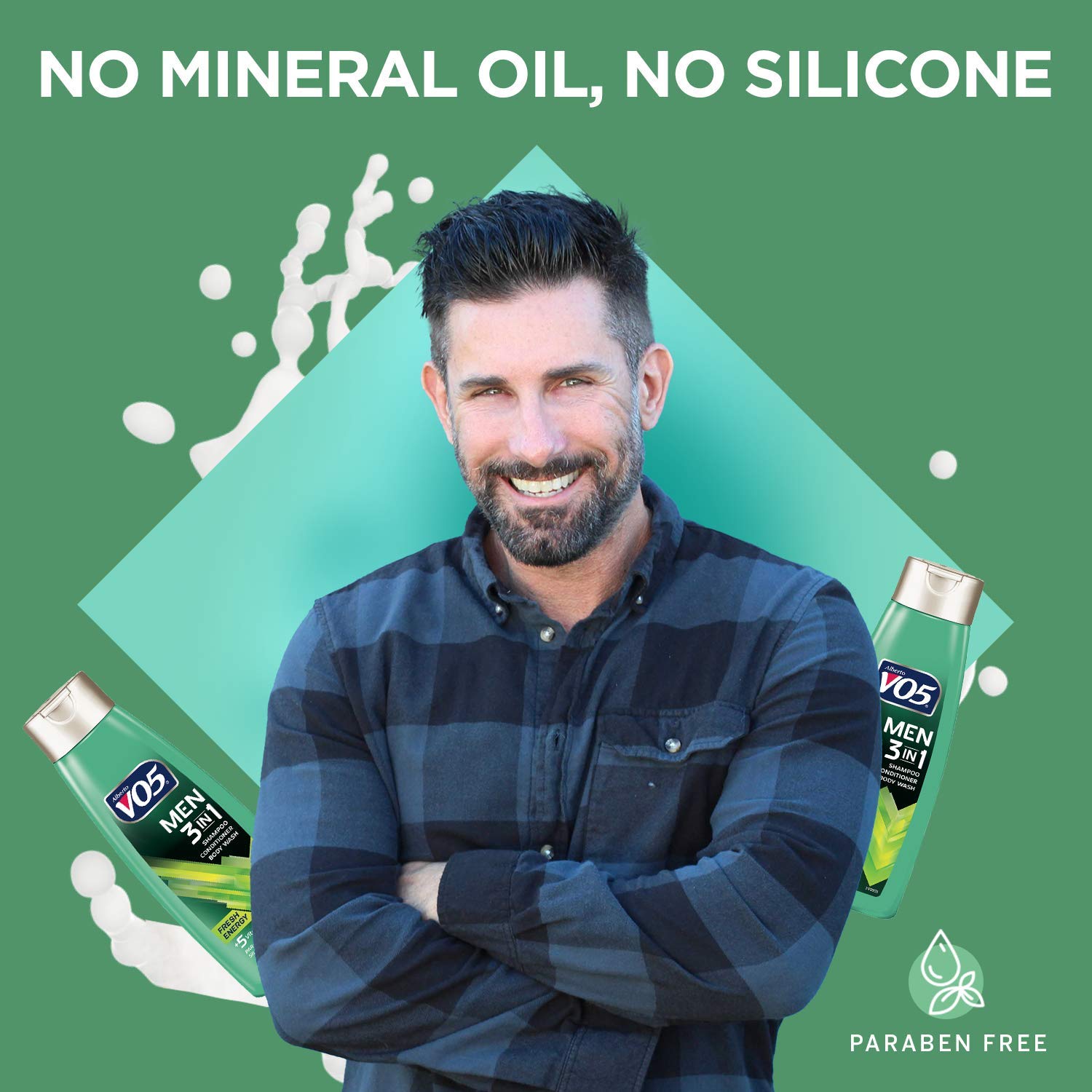 Alberto VO5 Men’s 3-in-1 Shampoo, Conditioner & Body Wash – Fresh Energy with 5 Essential Vitamins (A, H, C, B5, B3) – 12.5 Oz