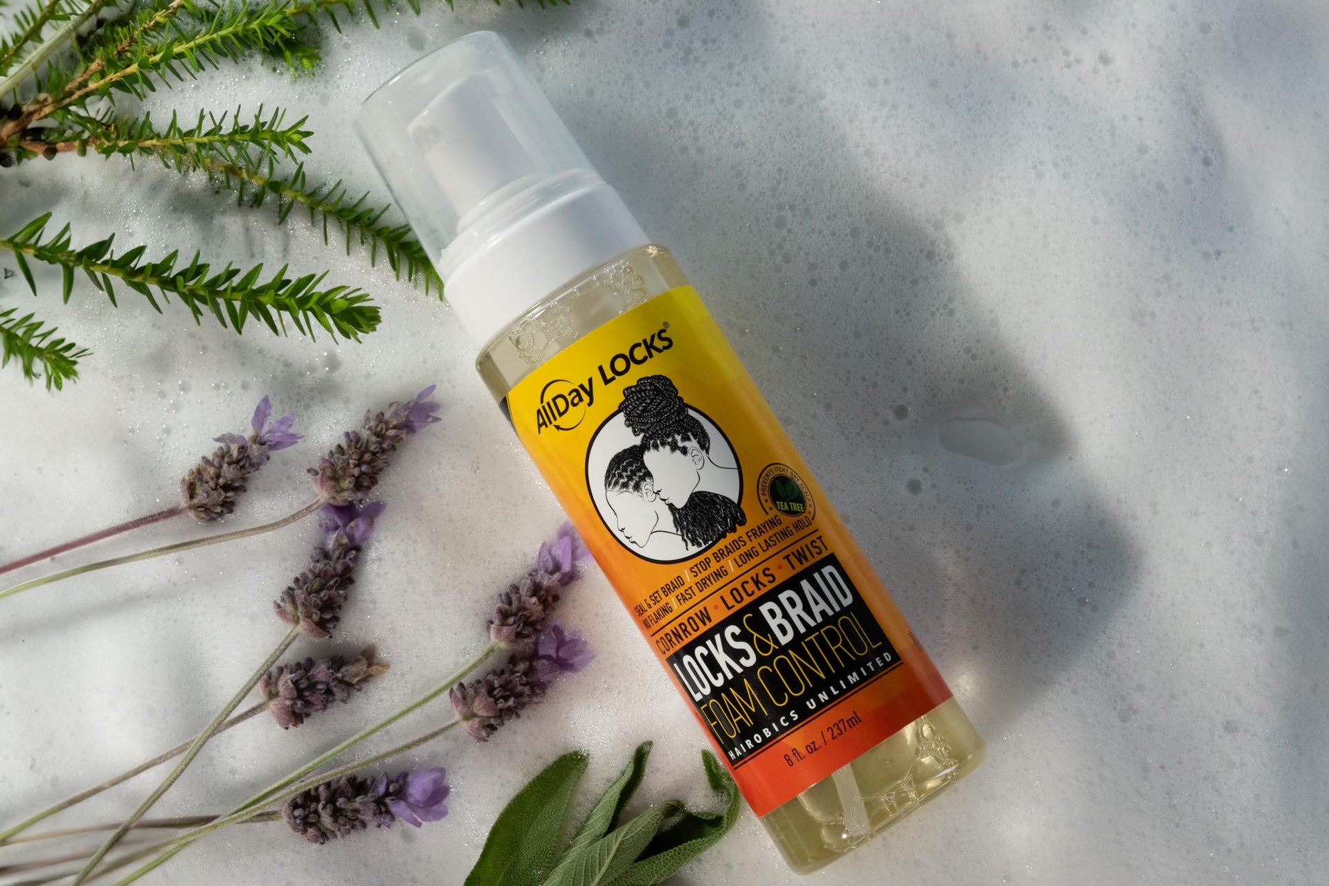 AllDay Locks Braid Foam 8oz | Long-Lasting Mousse for Shine & Hold | Frizz-Free Finish with Tea Tree, Lavender & Peppermint Oils | Moisturizes Braids & Twists