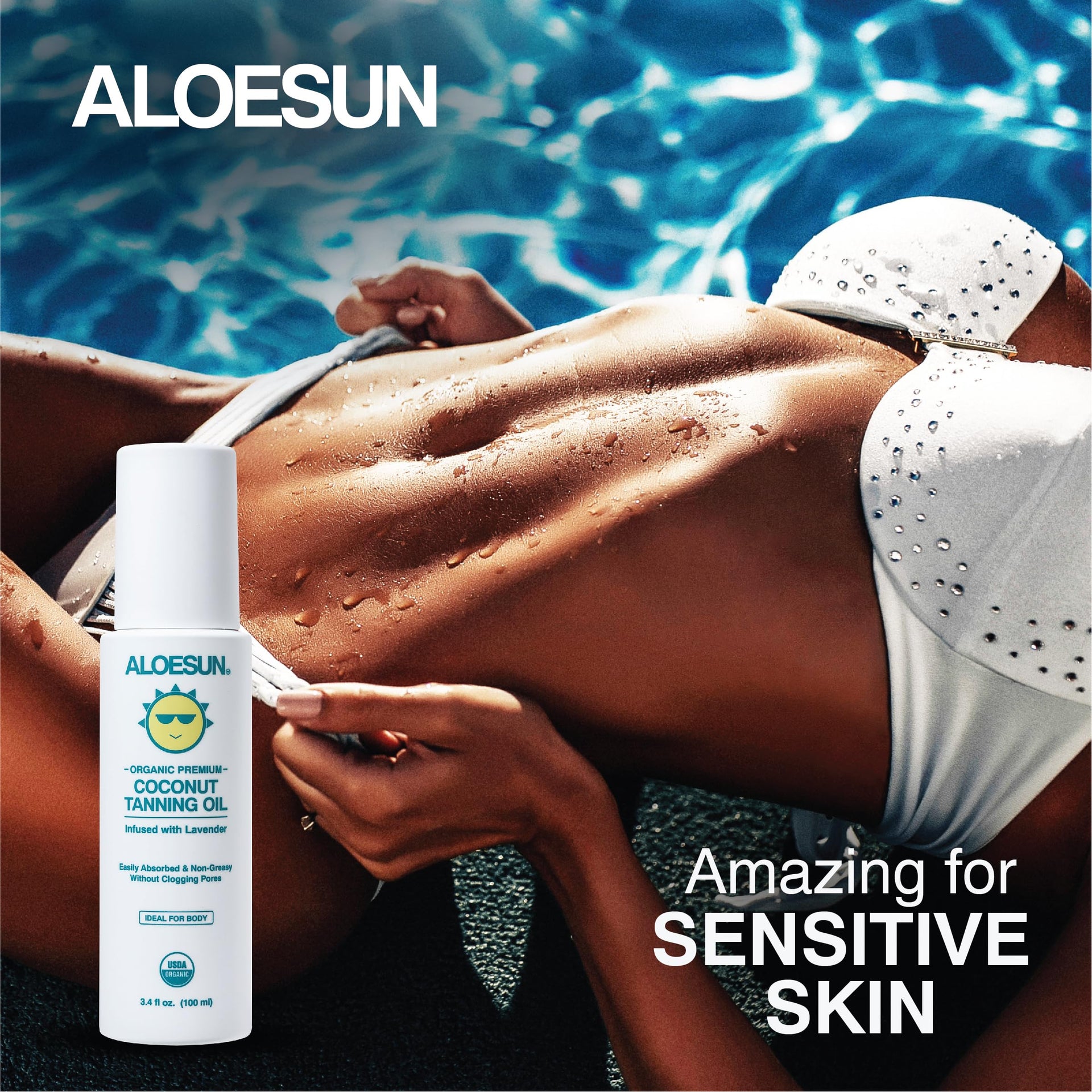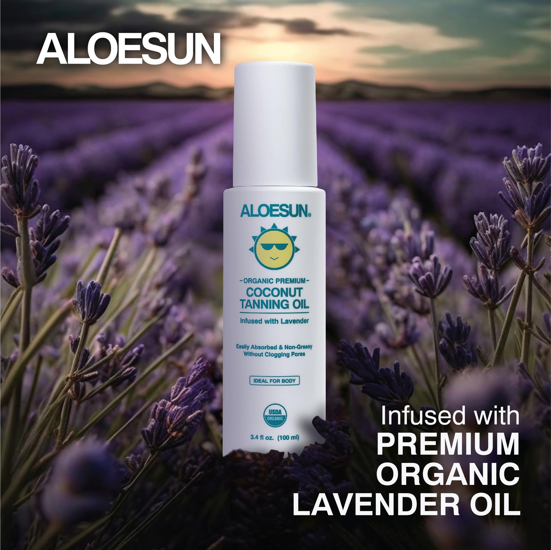 ALOESUN Organic Coconut Tanning Oil Spray 3.4 Oz – Deep Natural Tan Accelerator with Lavender Oil – Hydrating, Non-Greasy, Vegan & Travel-Friendly