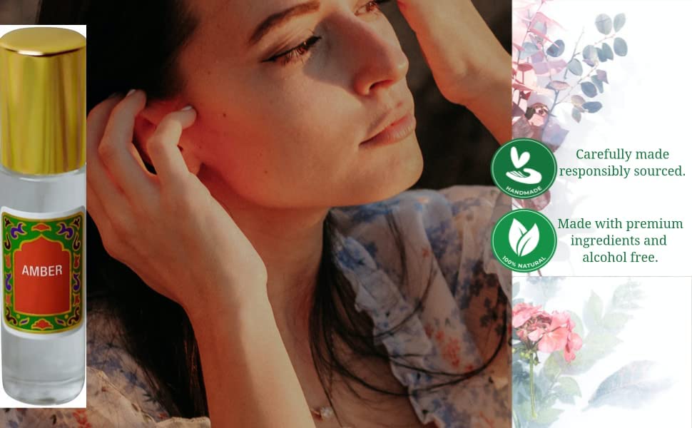Amber Perfume Oil Roll-On - Alcohol Free Perfumes for Women and Men by Nemat Fragrances, 10 ml / 0.33 fl Oz, Package may vary