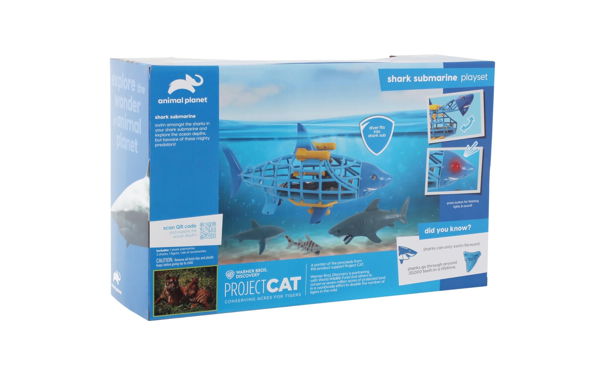 Animal Planet Shark Submarine Adventure Playset – Lights & Sounds Submarine with Chomping Great White Shark & Diver for Kids Ages 3+