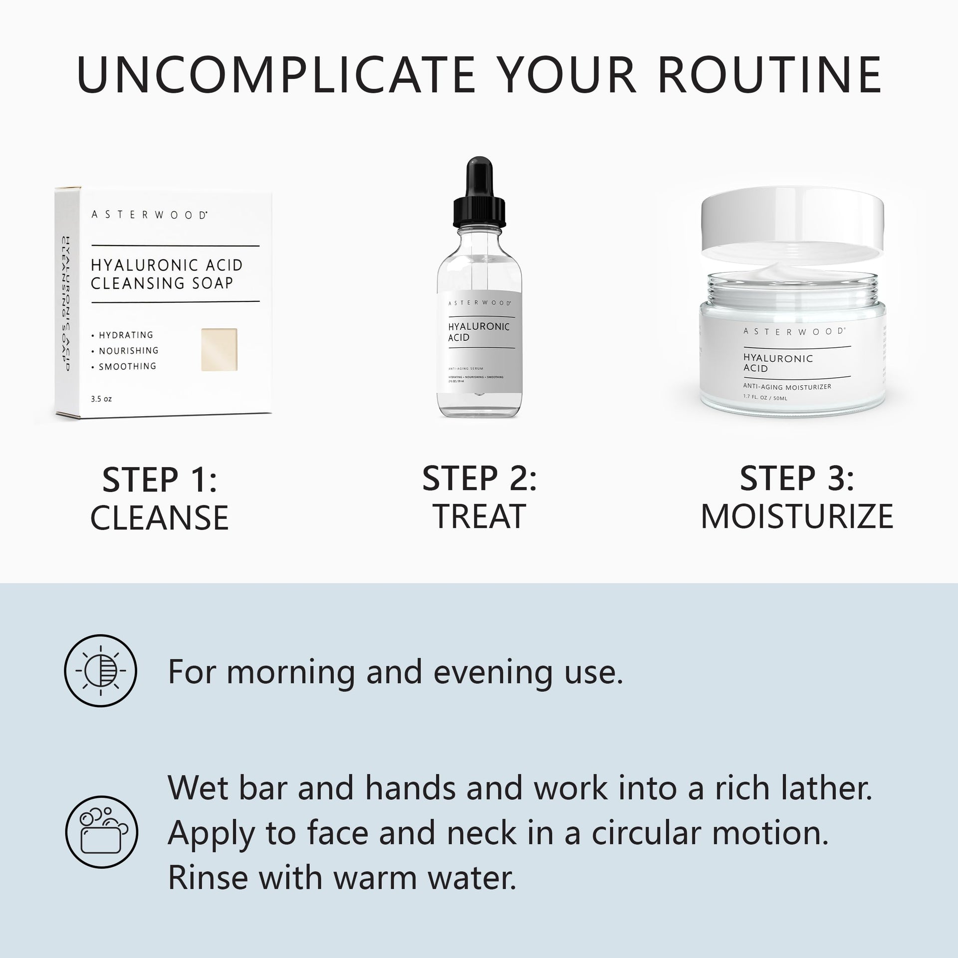 Asterwood Hyaluronic Acid Face Soap - Hydrating, Collagen-Boosting, Plumping & Soothing, Fragrance-Free, Sensitive Skin Friendly, 3.5 oz