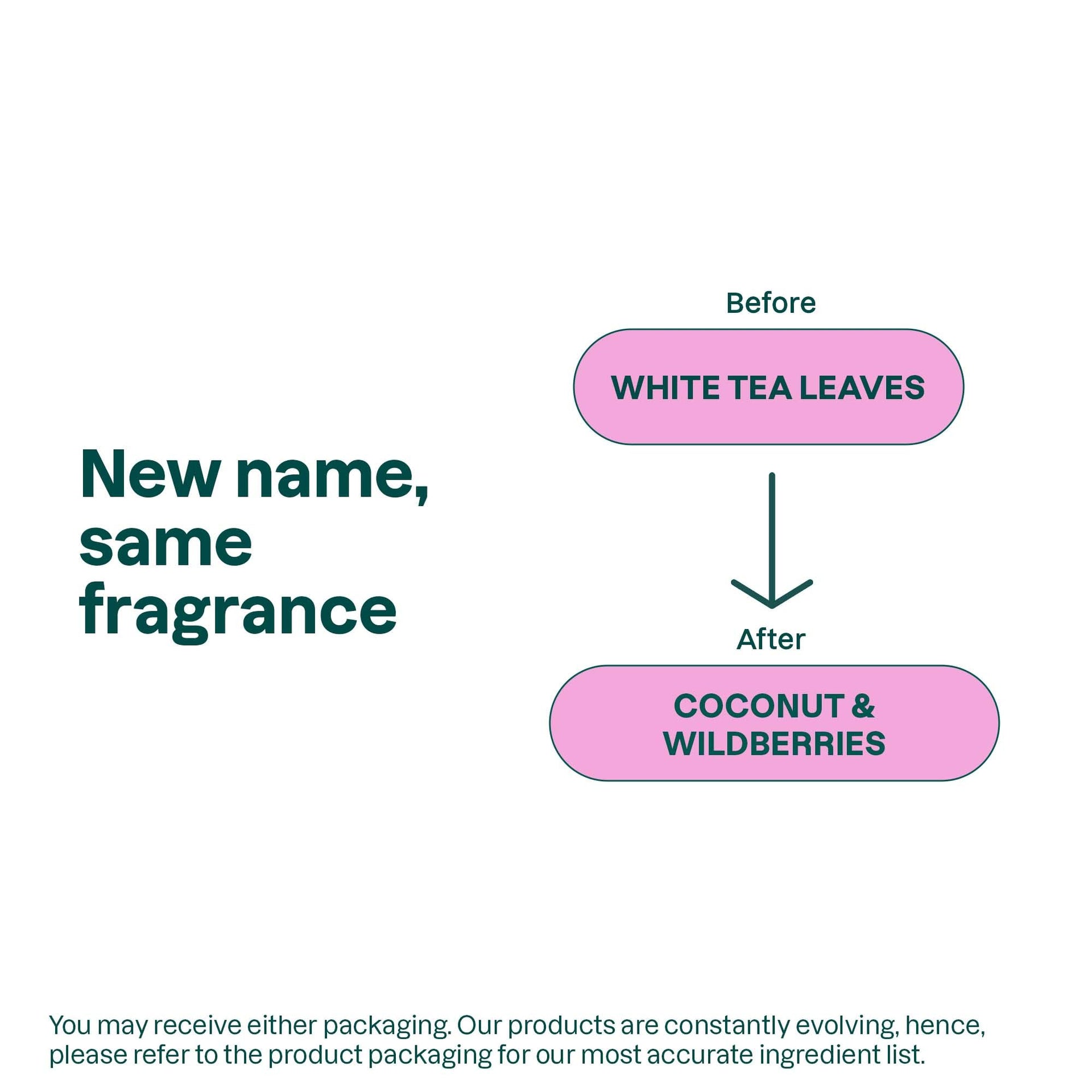 - COCONUT & WILD BERRY FRAGRANCE: Infused with a fruity fragrance features a lush blend of pear, papaya, and coconut notes for a naturally tropical and uplifting experience.