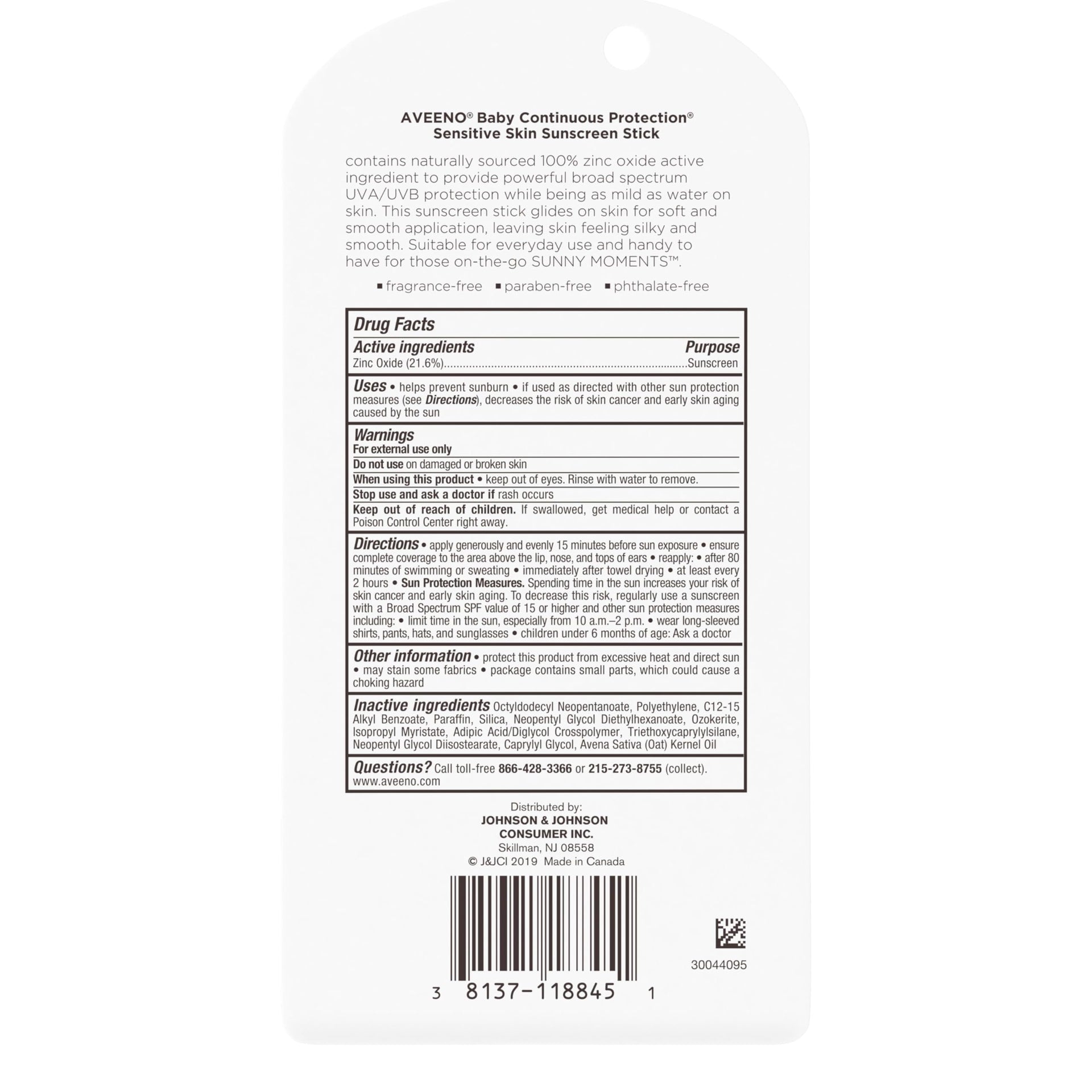 Aveeno Baby Mineral Sunscreen Stick SPF 50 for Sensitive Skin, 100% Zinc Oxide, Broad Spectrum Face & Body Sunblock, Travel Size 0.47 oz
