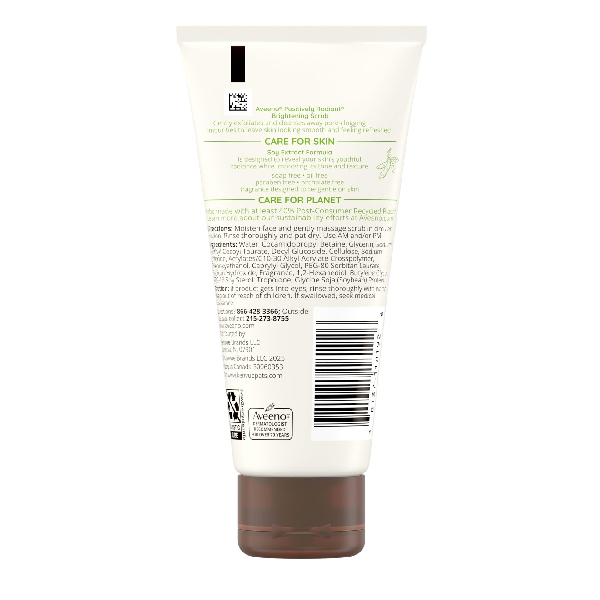 Aveeno Positively Radiant Daily Facial Scrub – Brightens & Exfoliates, Moisture-Rich Soy, Hypoallergenic, Oil & Soap-Free, 2 oz Travel Size