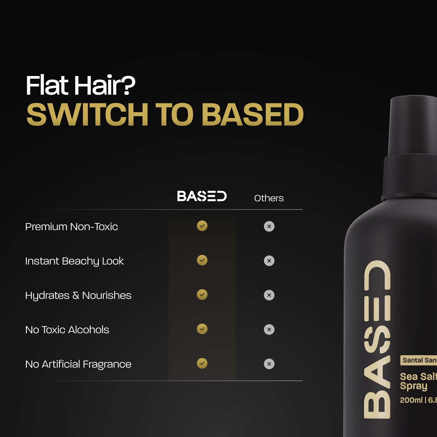BASED Sea Salt Spray for Hair – Natural Finish, Volumizing & Texturizing Spray with Kelp & Vitamin B5 – Light, Non-Greasy, Paraben & Sulfate Free, 6.8 oz