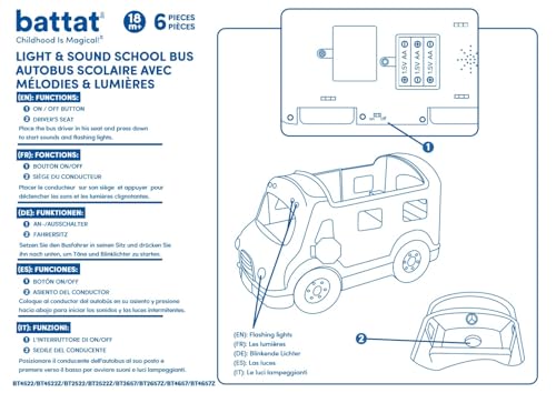 Details: Traveling to school is always the best part of the day! What's all that fuss? It must be the Battat school bus! The wheels on the bus go round and round as it bumps over the rug and across the floor on its way to school! Your little one will sure look forward to his first day of school with this school bus. Press on the driver's head to hear the realistic sound of the engine starting. And then... Beep! Beep! The bus is here! Safety lights and headlights will light up and flash. Flip-down door on the side makes getting on and off the yellow bus easy peasy. Includes 5 toy characters: 1 friendly driver and 4 friends ready to play! Sized just right for little hands, this toy bus is easy-to-grab and drive around. One push goes a long way (or at least to the next stop on the bus route) and make sure to pop open the red STOP sign on the side to ensure the safety of your tiny passengers. A magic school bus, ready for a good time! Made of worry-free materials, the Battat Activity School Bus, just like all of Battat Toys, meet or exceed EU, U.S. and Canadian safety standards. Heavy-duty fun for itty bitty hands!