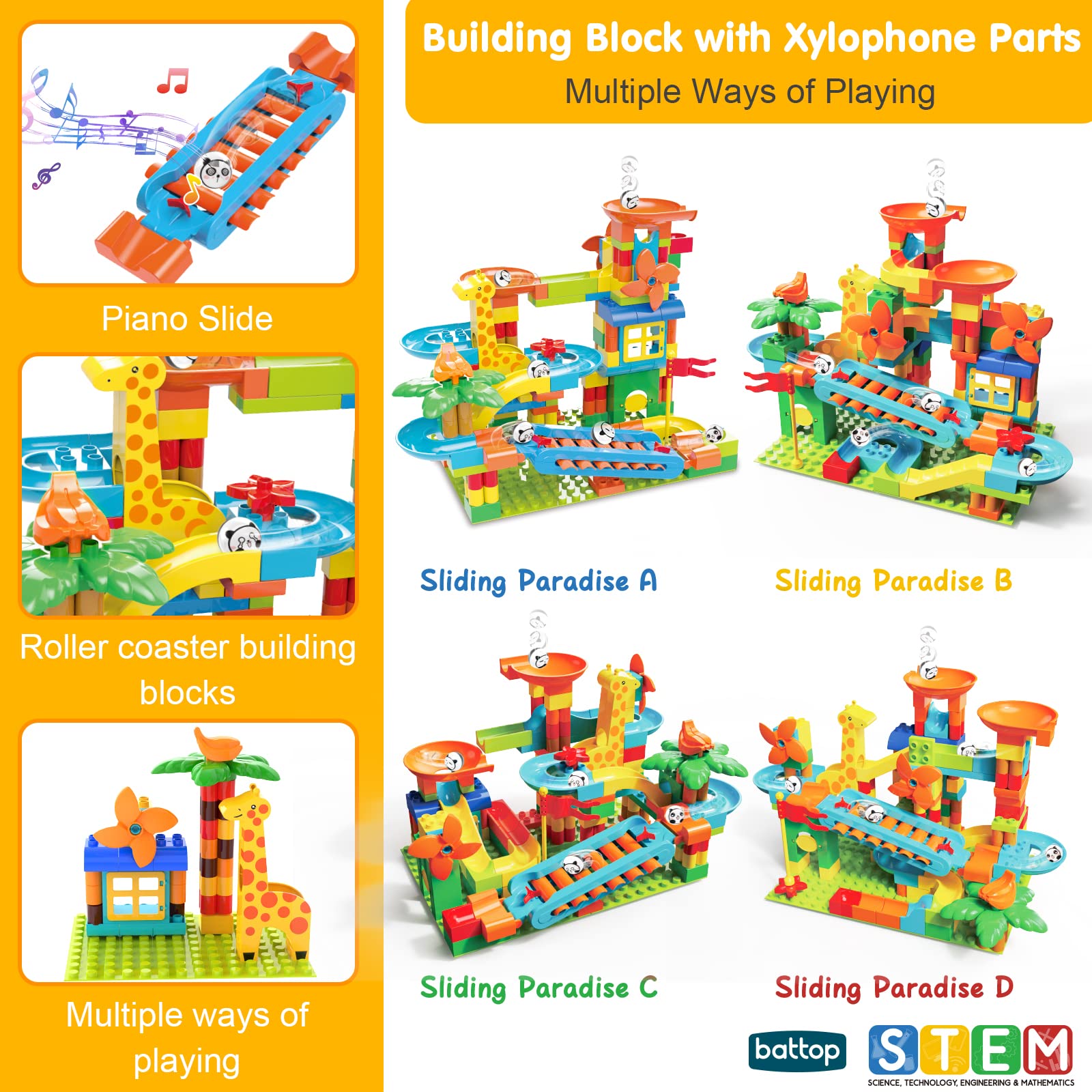 BATTOP Marble Run for Kids 4-8 – 167 PCS Big Blocks, 4-Ball Race Track, STEM Building Toy, Classic Marble Run Set, Xmas Gift for Boys & Girls