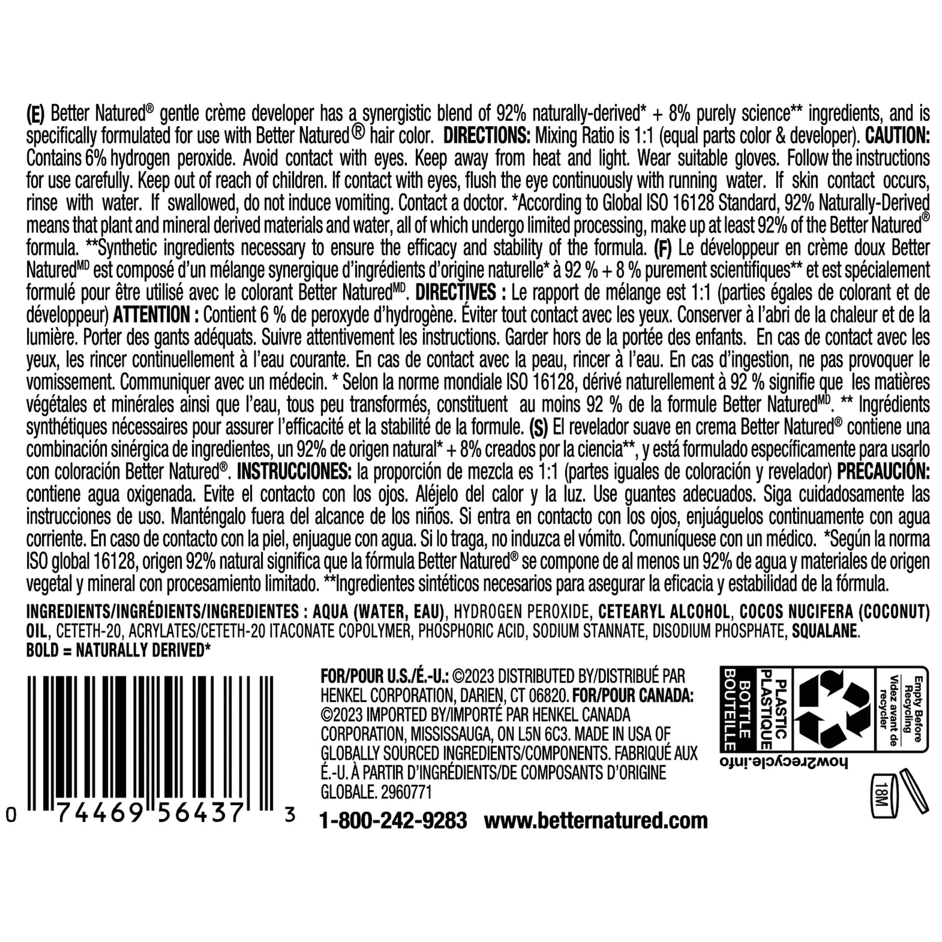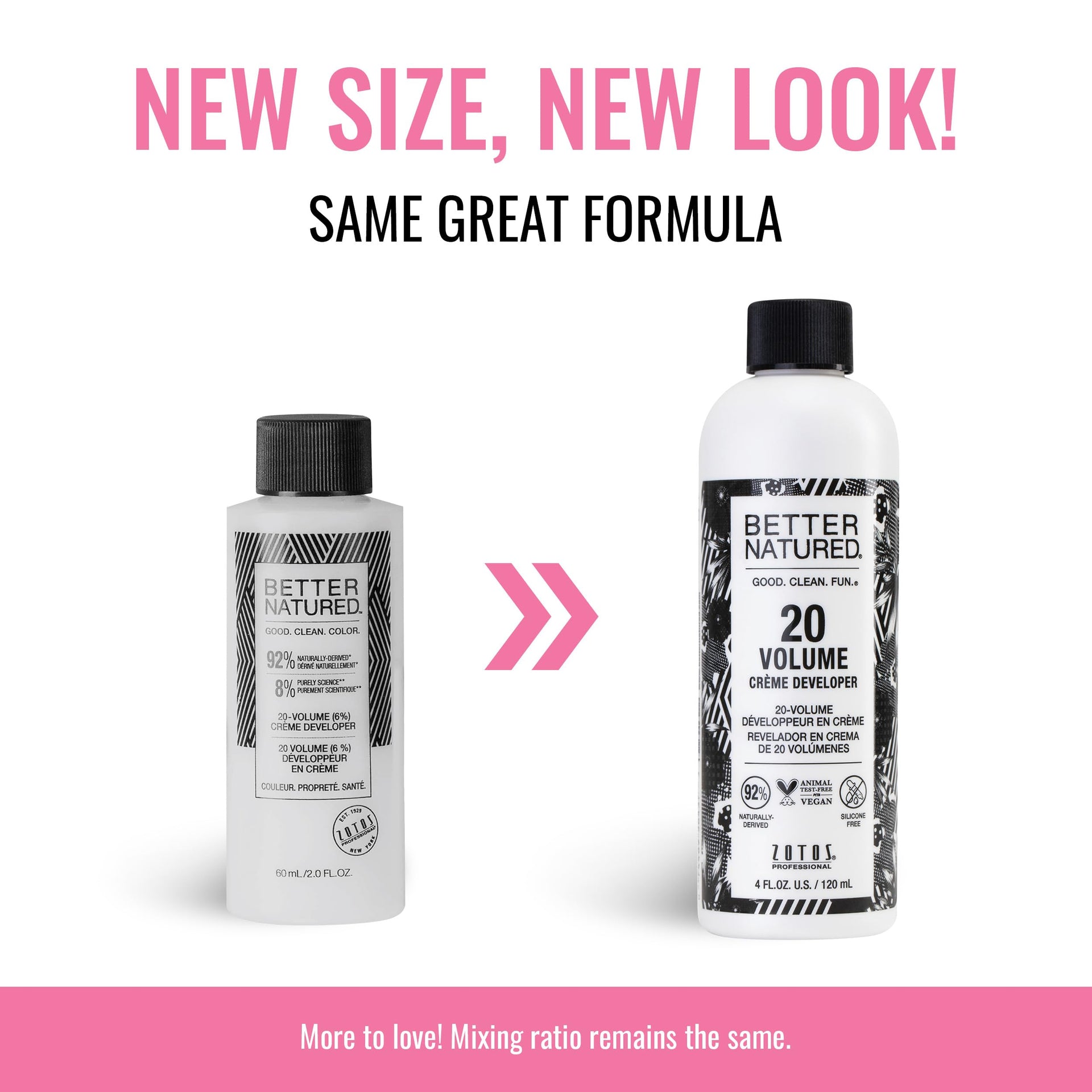 - Better Natured gentle creme 20-volume (6%) developers are formulated for use with Better Natured permanent hair color.