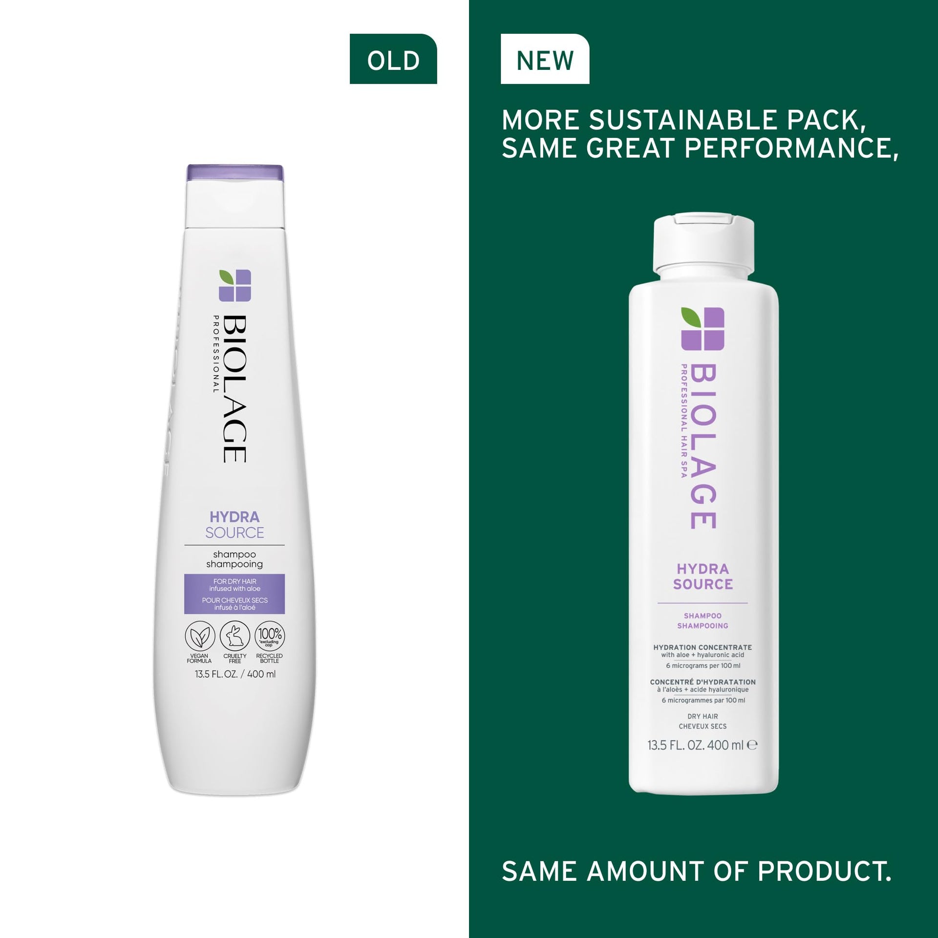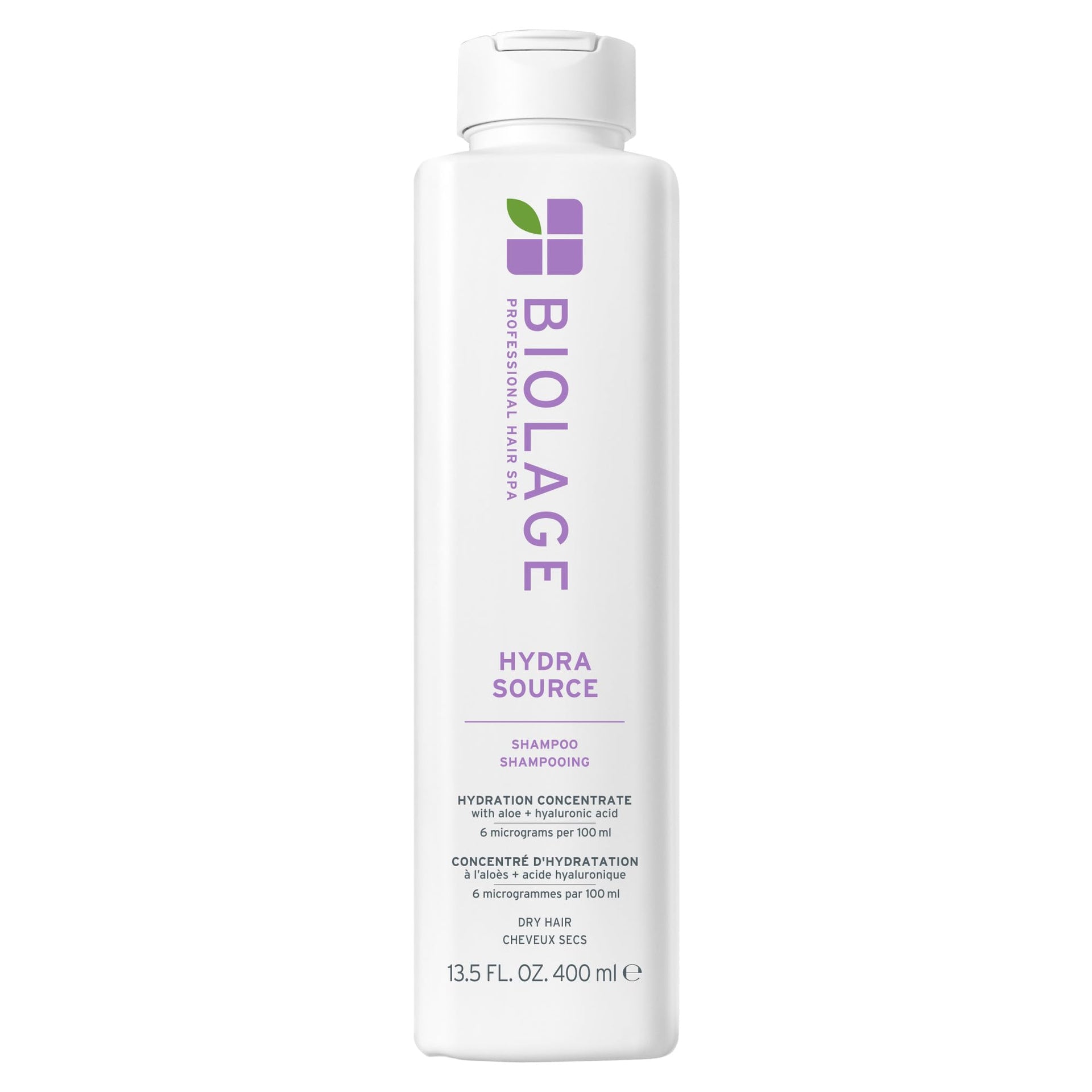 **Hydrate Dry Hair with Biolage Hydra Source Shampoo** Restore moisture to dry, tired hair with Hydra Source Shampoo. Our potent formula, infused with micro-filtered aloe vera and fermented hyaluronic acid, delivers 6x more hydration for soft, touchable strands. **Benefits:** - Gently cleanses and restores moisture balance - Adds shine and softness - Provides 6x more hydration after one use* **Features:** - Bio-based aloe vera nourishes hair and polishes the cuticle for lasting hydration and shine - Ultra-concentrated hyaluronic acid penetrates the hair fiber, sealing the cuticle and enhancing intense hydration - Vegan formula - Bottle and cap made with 100% recycled plastic - Paraben-free, mineral oil-free, silicone-free, colorant-free - Cruelty-Free International approved under the Leaping Bunny Programme **Recommended for:** Dry hair, suitable for color-treated hair **How to Use:** Apply to wet hair, lather, and rinse thoroughly. **Experience the power of hydration with Biolage Hydra Source Shampoo. *Hydra Source Shampoo, Conditioning Balm, and Daily Leave-In Tonic vs. Non-conditioning shampoo.