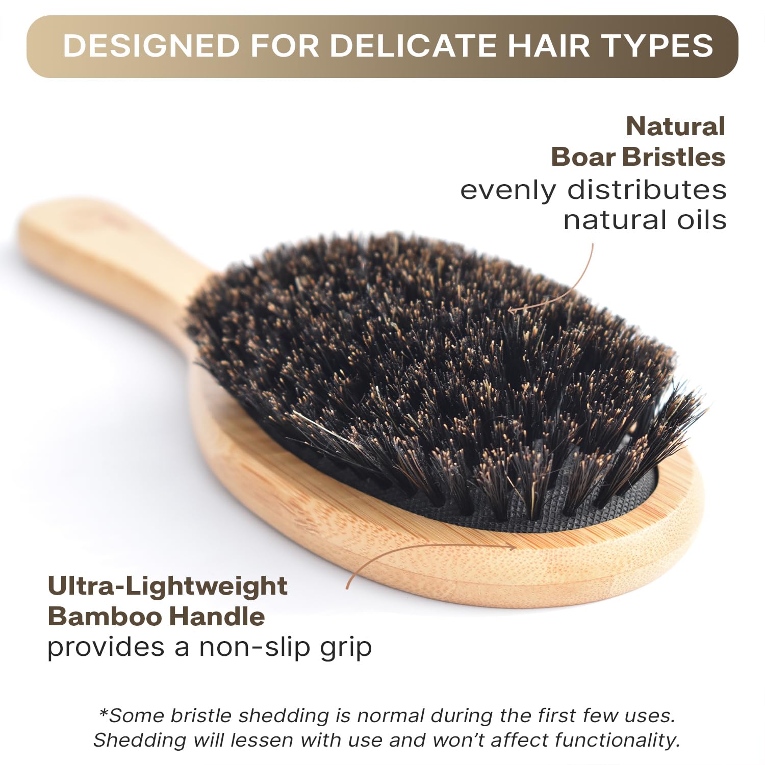 Boar Bristle Hair Brush for Women and Men, Natural 100% Soft Boars Hairbrush for Fine and Thin Hair