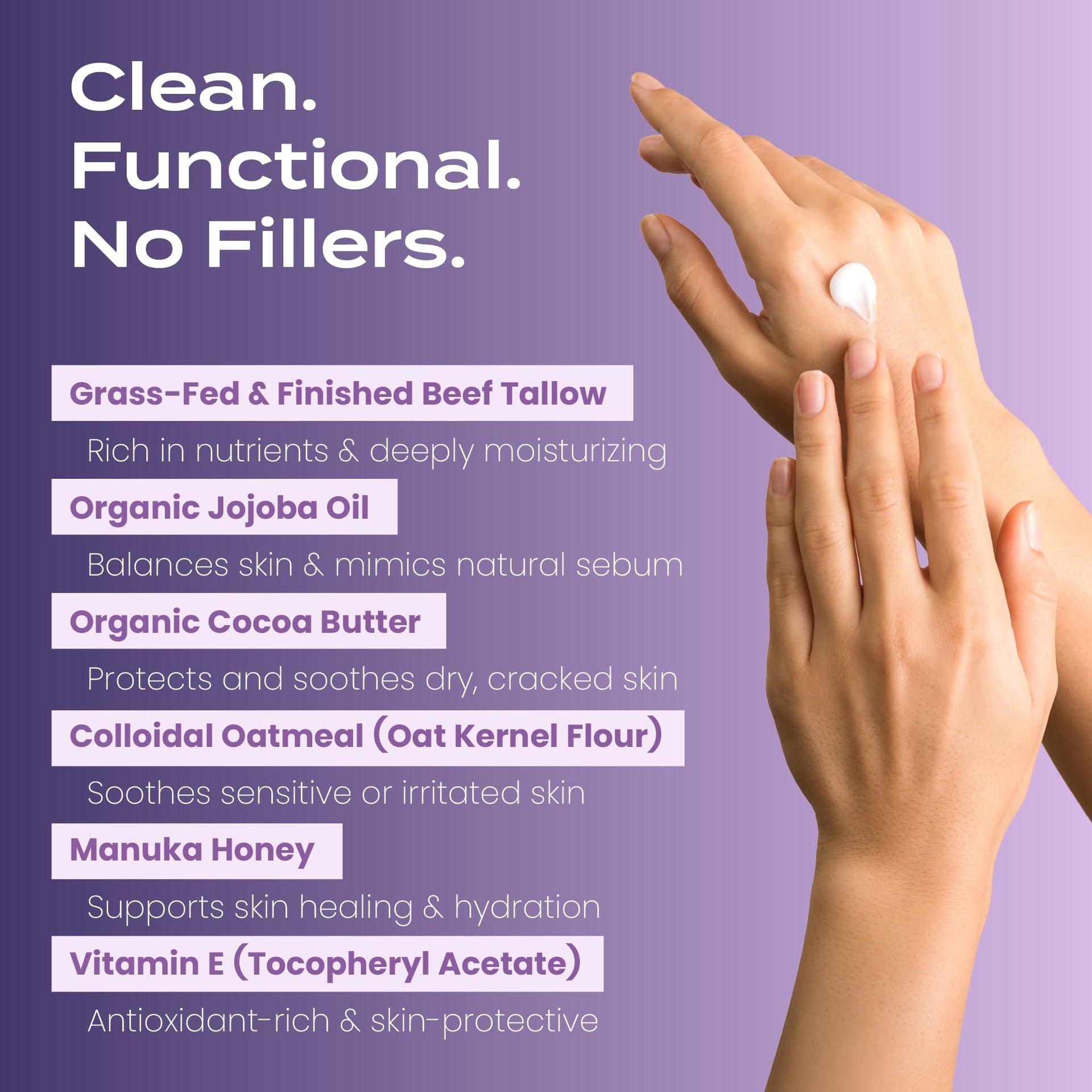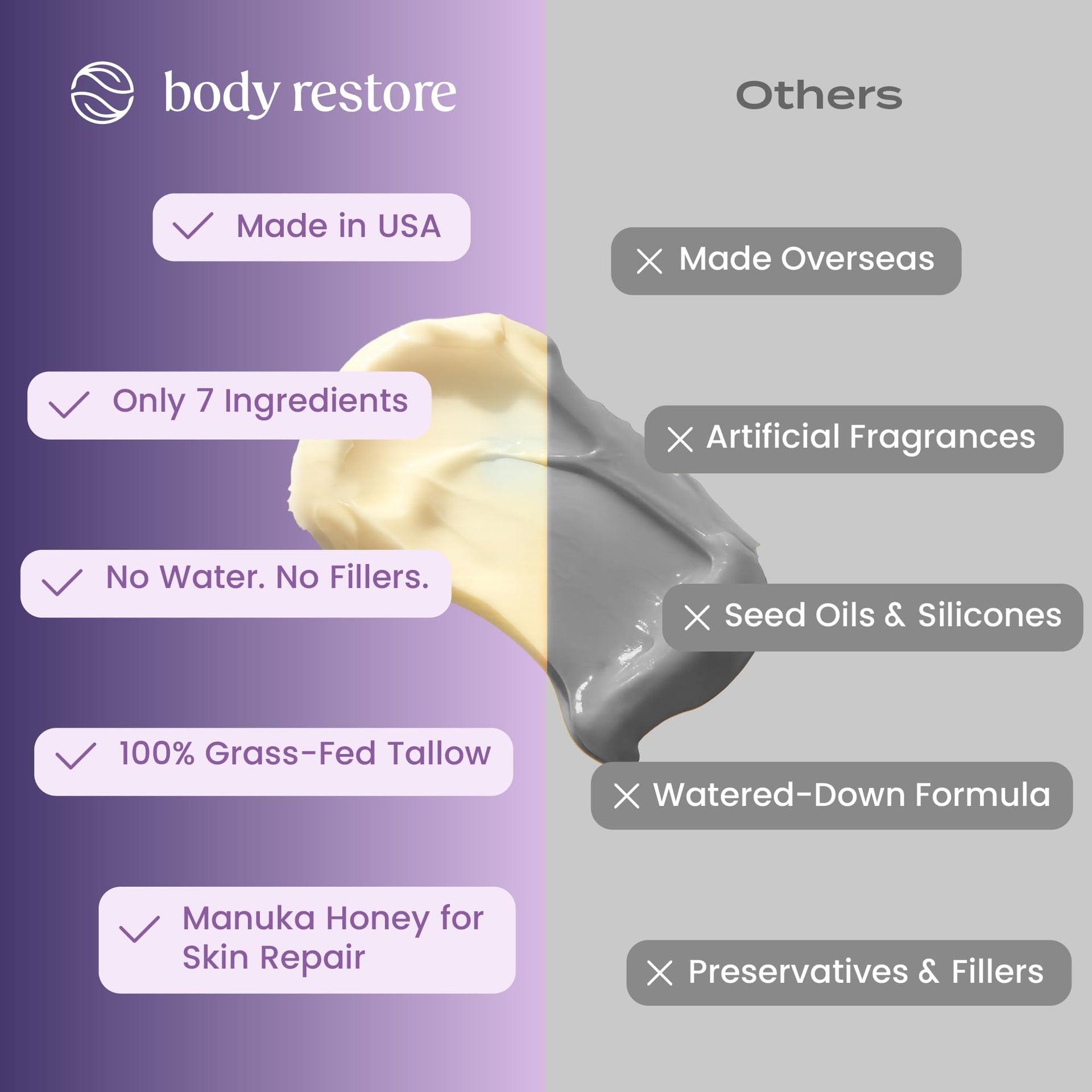 Body Restore Grass-Fed Whipped Beef Tallow for Dry Skin – Lavender, Manuka Honey & Jojoba Oil, Travel & Gift Essentials for Men & Women