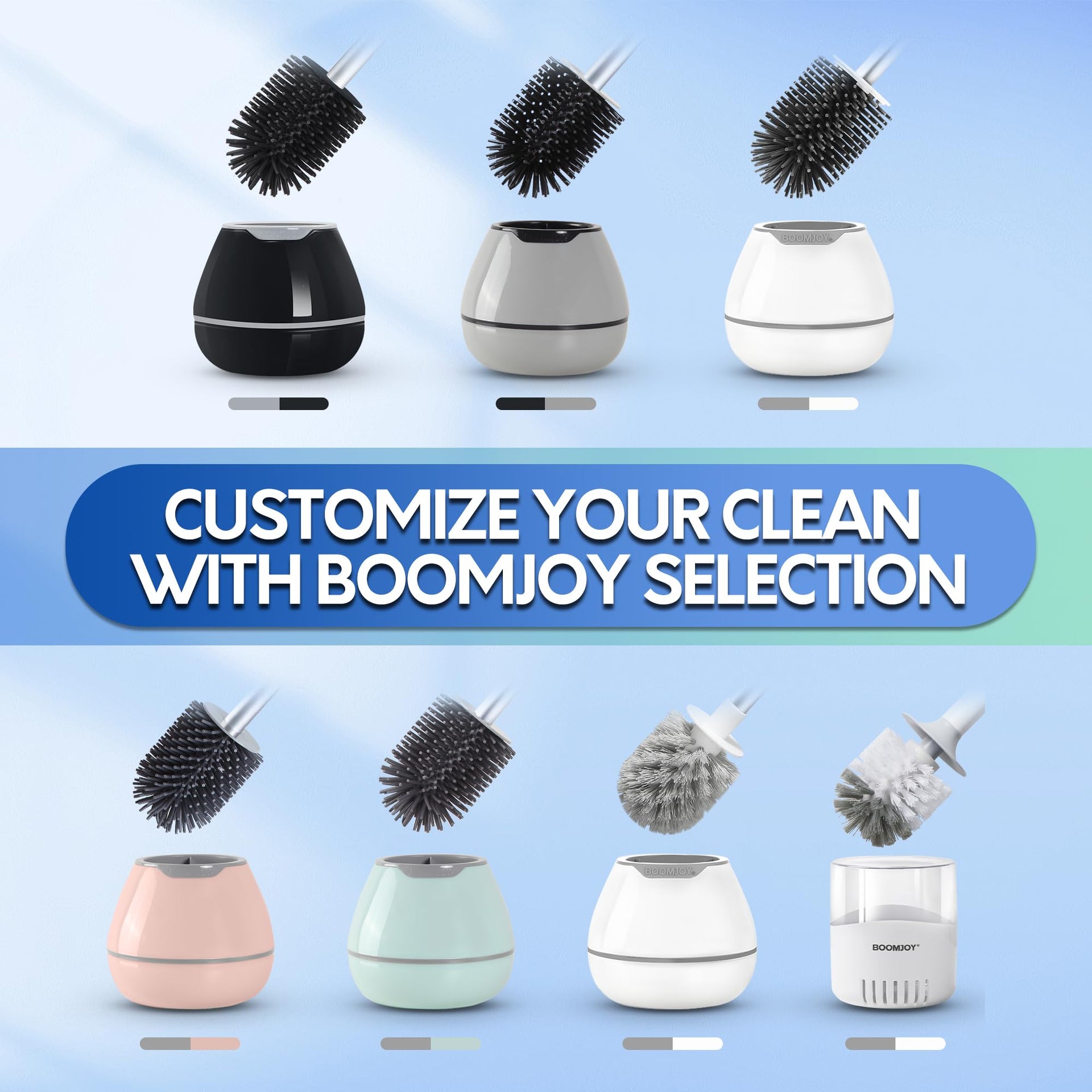 - STYLISH COLOR VARIETY: Elevate your bathroom decor with BOOMJOY's Toilet Brush and Holder Set. With a wide array of colors to choose from, you can effortlessly match your bathroom's design, adding a pop of style and functionality