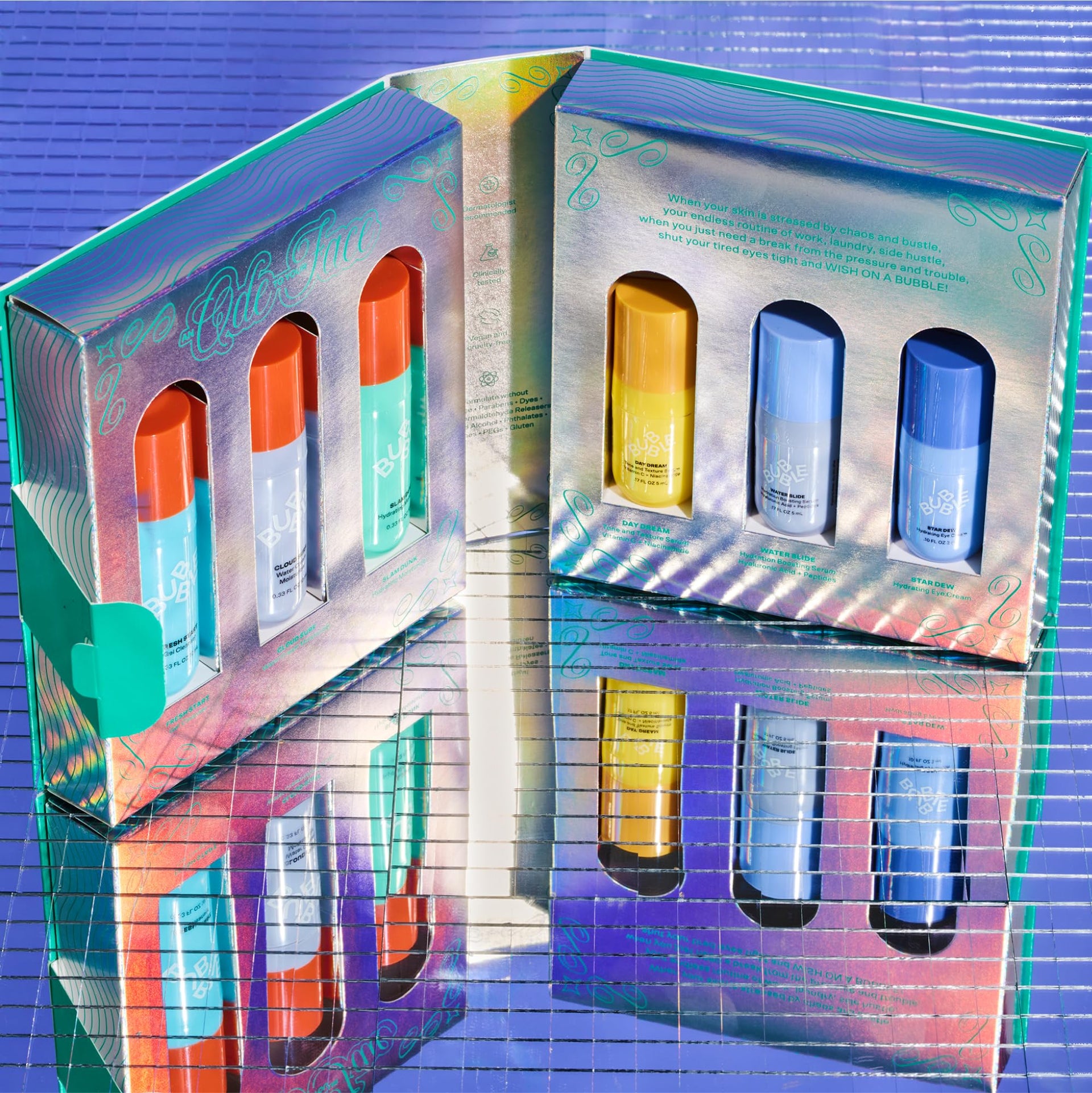 Bubble Skincare The Wish List Mini Gift Set – Travel Size Gel Cleanser, Vitamin C & Hyaluronic Serum, Eye Cream & Moisturizers (6pc)