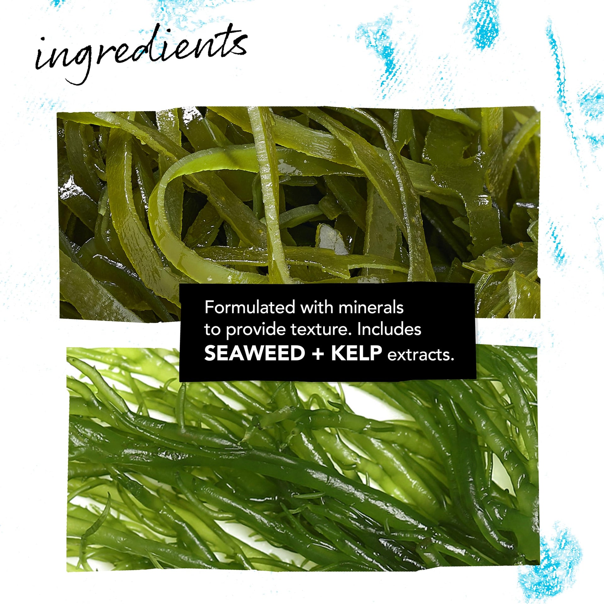 - HOW IT WORKS: Formulated with minerals to provides texture. Includes Seaweed and Kelp Extracts.