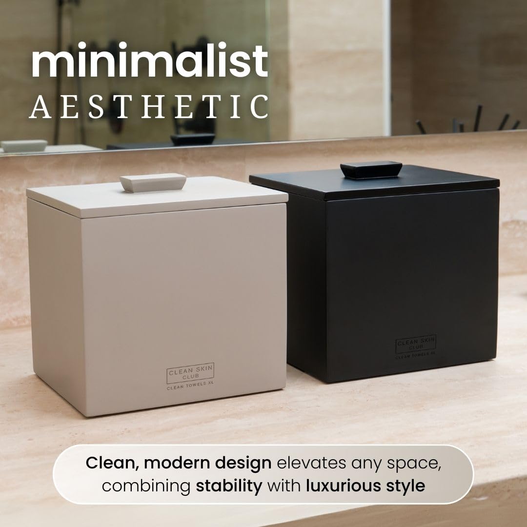 CLEAN SKIN CLUB XL Cement Box for 50 Disposable Towels, Concrete Face Towelette Holder, Bathroom Counter Storage, Taupe Stone