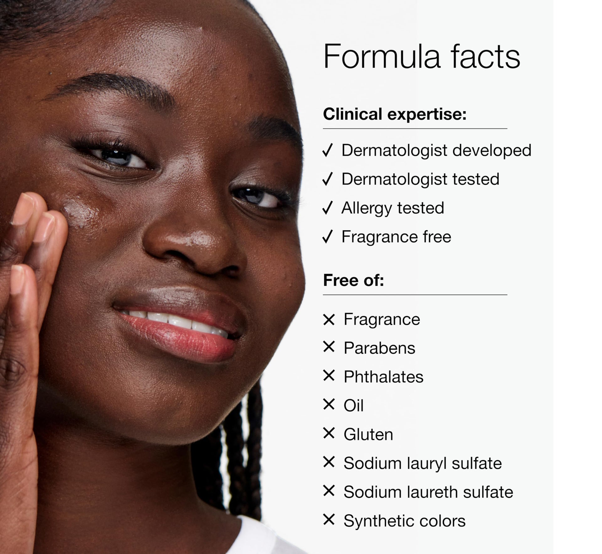 - Clinical Expertise. Dermatologist developed. Dermatologist tested. Allergy tested. Fragrance free. Non-acnegenic.