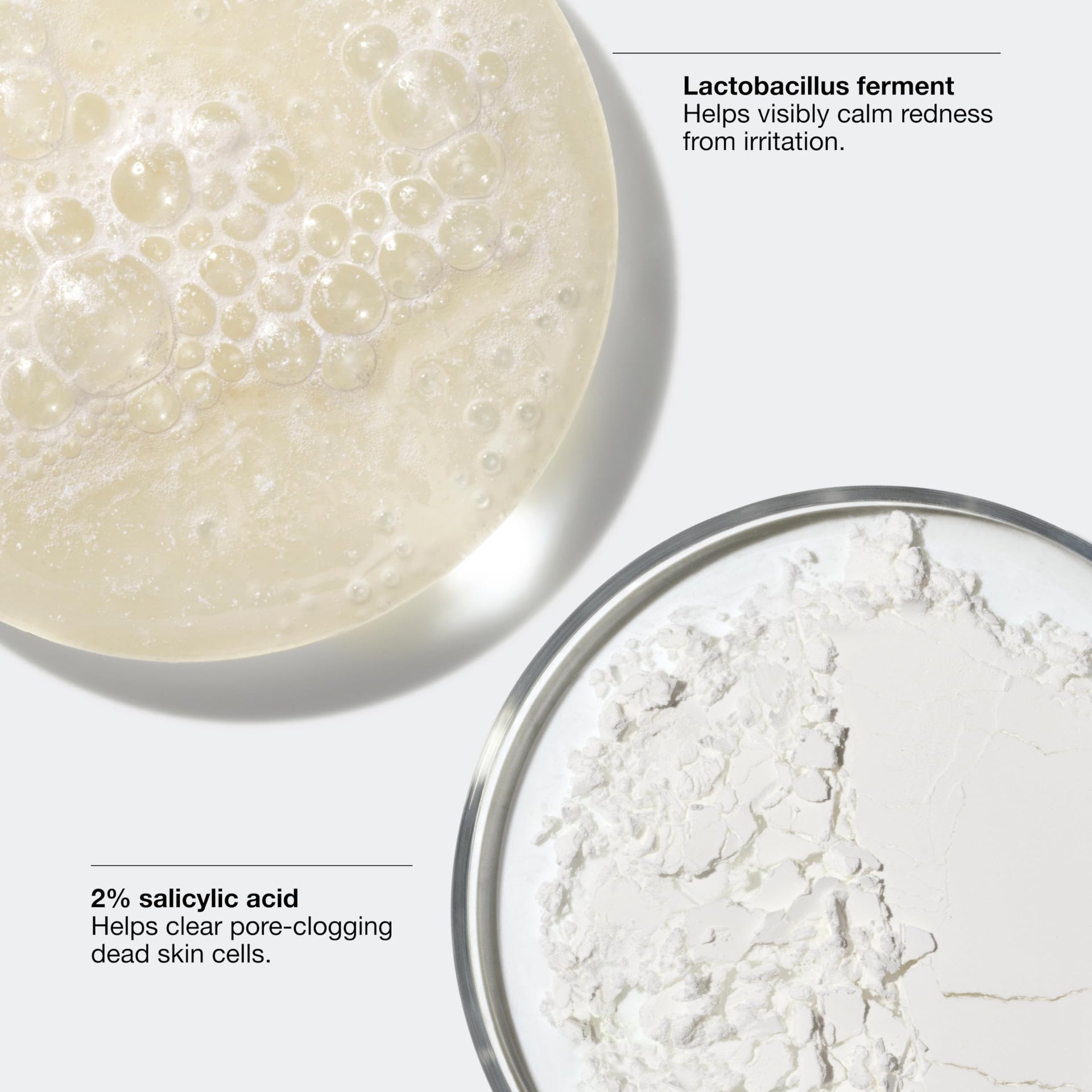- Witch hazel helps refine skin. Laminaria saccharina helps break down oil that can clog pores and lead to breakouts. Lactobacillus ferment helps visibly calm redness from irritation.
