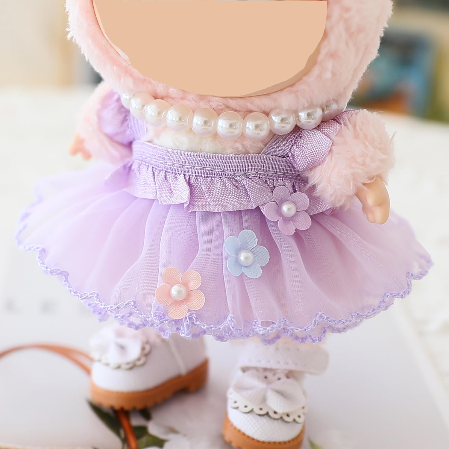 - 【Package Include】5 Pieces 15cm & 17 cm Plush Doll Clothes Accessories Including 1 x Adorable Bow-knot,1 x Purple glasses,1 x Pearl necklace,1 x Purple Tulle Skirt,2 x Princess shoes, No doll. Doll clothes have some elasticity, easy to put on and take off, and it is more convenient to put it on from the feet upwards.