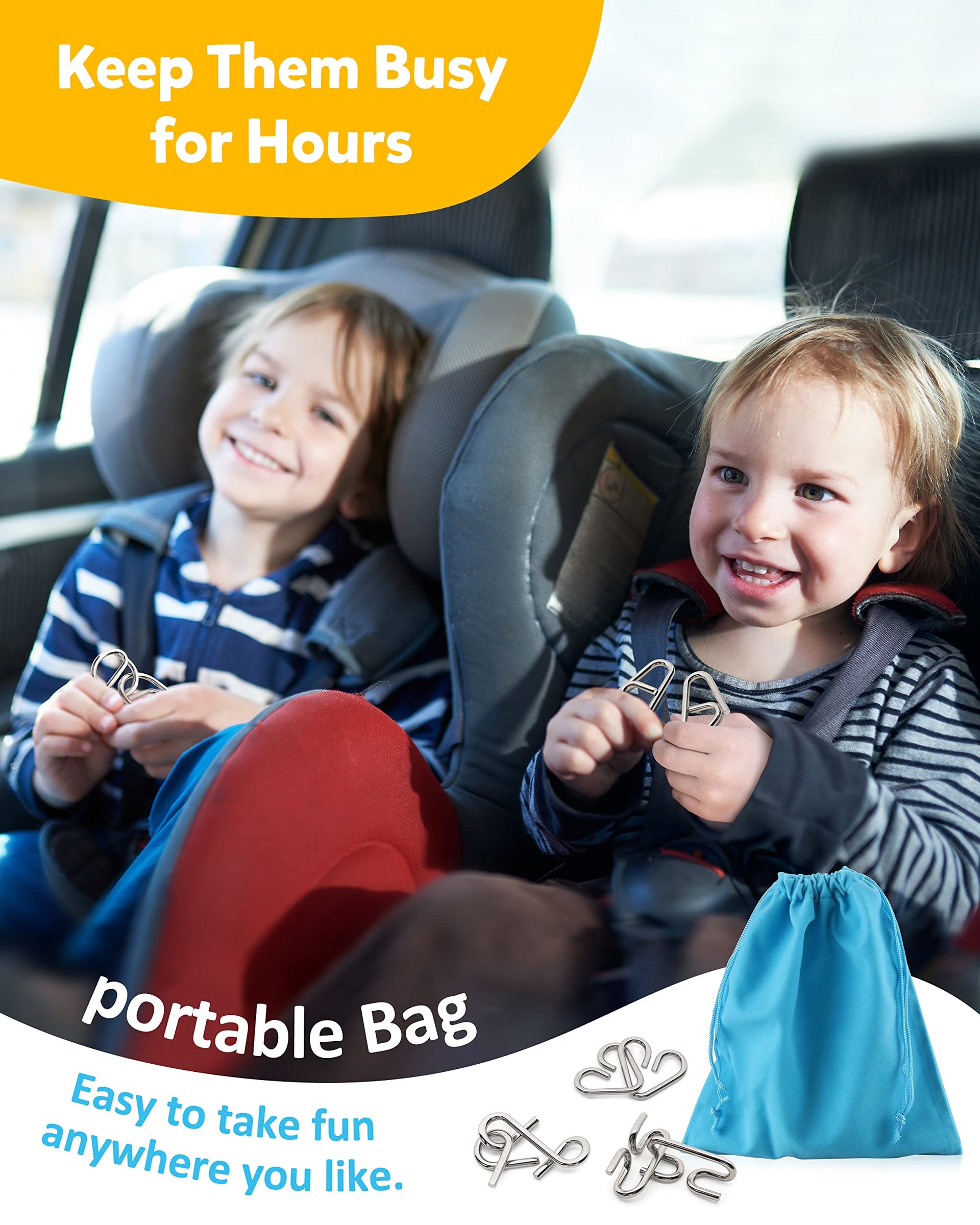 Coogam 16-Piece Metal Wire Puzzle Set with Pouch – Brain Teaser, IQ Challenge, Interlock & Chinese Ring Magic Trick Toy for Kids & Adults