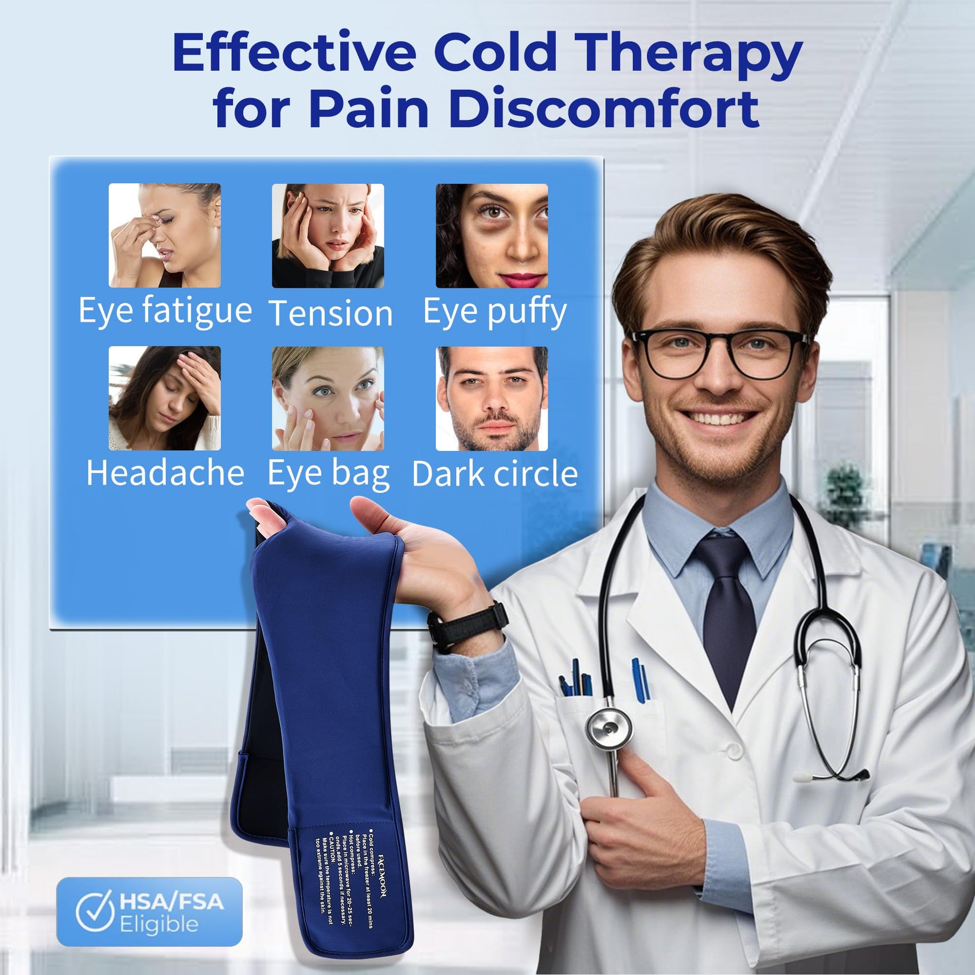 Cooling Gel Eye Mask for Puffy Eyes & Migraine Relief, Reusable Cold Compress, Dark Circles, Post-Surgery, Flexible Ice Pack (Blue)