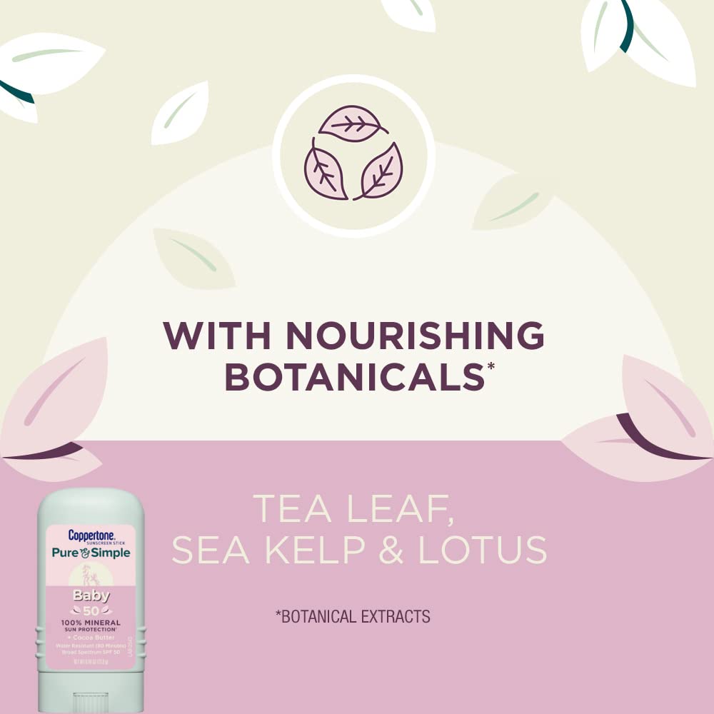 Details: From the #1 pediatrician recommended sunscreen brand(2), Coppertone baby sunscreen is hypoallergenic and gentle. This Coppertone sunscreen SPF 50 protects your baby's skin from the sun with a water resistant sunscreen (80 minutes) formula that's dermatologically tested and free of PABA, dyes, Octinoxate and Oxybenzone. This Coppertone WaterBabies spray on sunscreen for babies delivers Broad Spectrum SPF 50 UVA/UVB sun protection and is gentle on baby's delicate skin. This SPF 50 sunscreen spray is visible wherever it's sprayed, ensuring proper coverage before the sunscreen is rubbed in. Coppertone Pure and Simple Baby Sunscreen Stick SPF 50 provides convenient sun protection to exposed areas such as the ears, nose and face in a convenient zinc oxide sunscreen stick. Apply Coppertone sunscreen to your baby's skin whenever the fun takes you outside. This sunscreen pack is perfect for family fun in the sun. Coppertone is voted the most trusted sunscreen brand(1) and each sunscreen Coppertone creates follows a tradition of trusted, quality sun protection products. Use and reapply Coppertone baby sunscreen as directed. (1)Voted most trusted sunscreen brand by American shoppers based on the 2024 BrandSpark American trust study. (2)According to IQVIA, Provoice Survey From June 1, 2021 to May 31, 2022