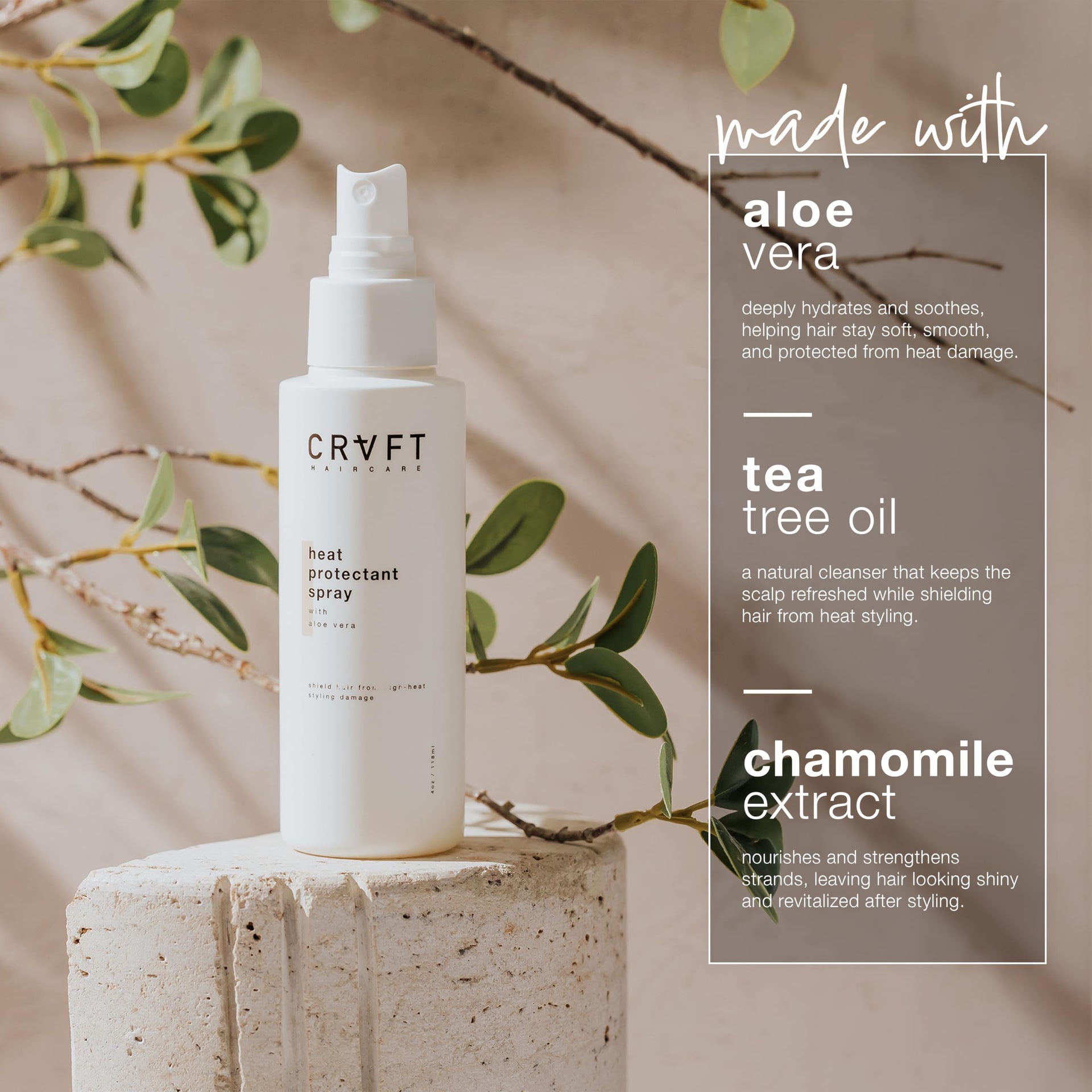 CRVFT Hair Heat Protectant Spray 4oz – Lightweight, Thermal Hair Protection Spray for Blow Drying, Flat Iron & Curling Iron – Prevents Damage/Breakage