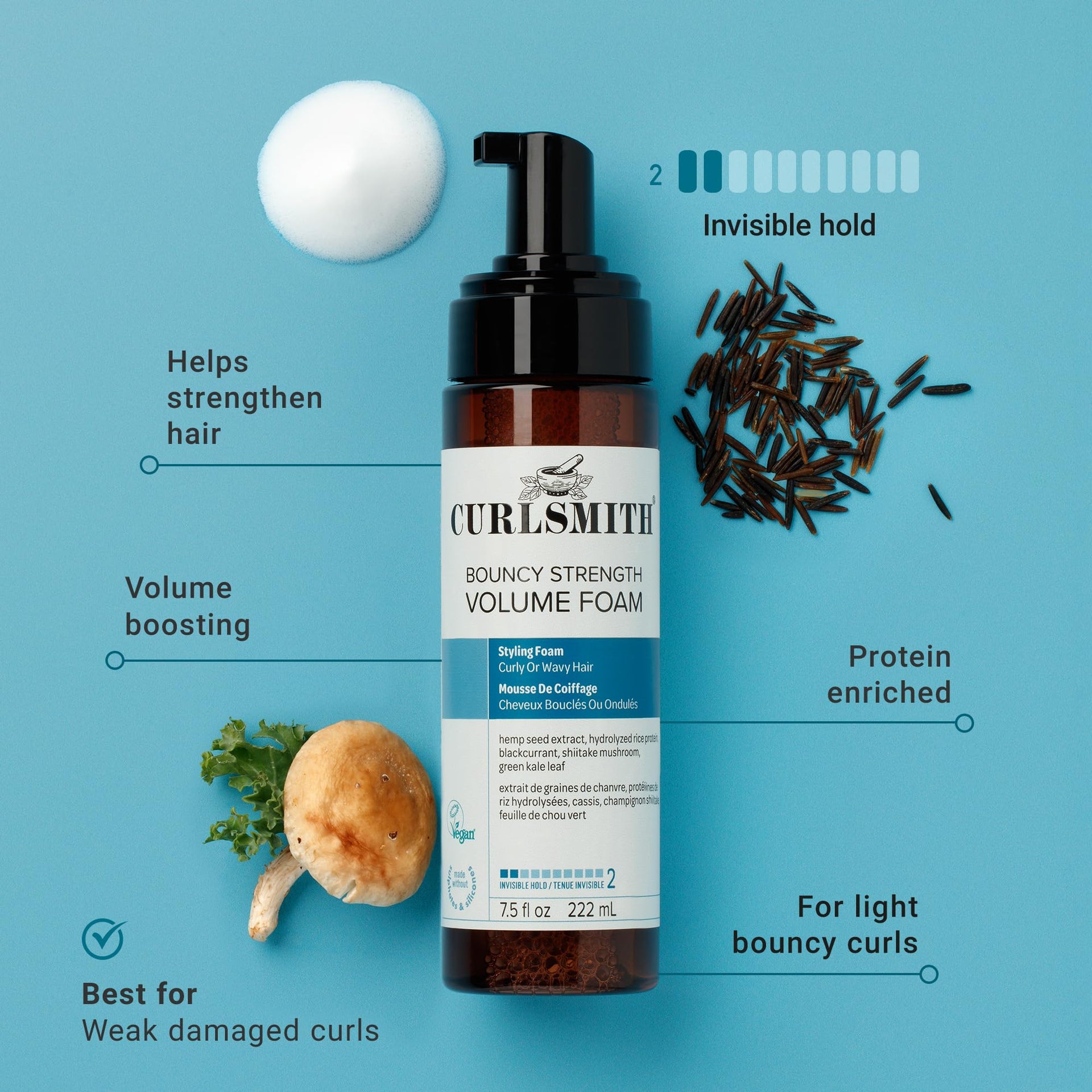 CURLSMITH - Bouncy Strength Volume Foam, Styling Foam for Curly & Wavy Hair, Light Hold (7.5 fl oz)