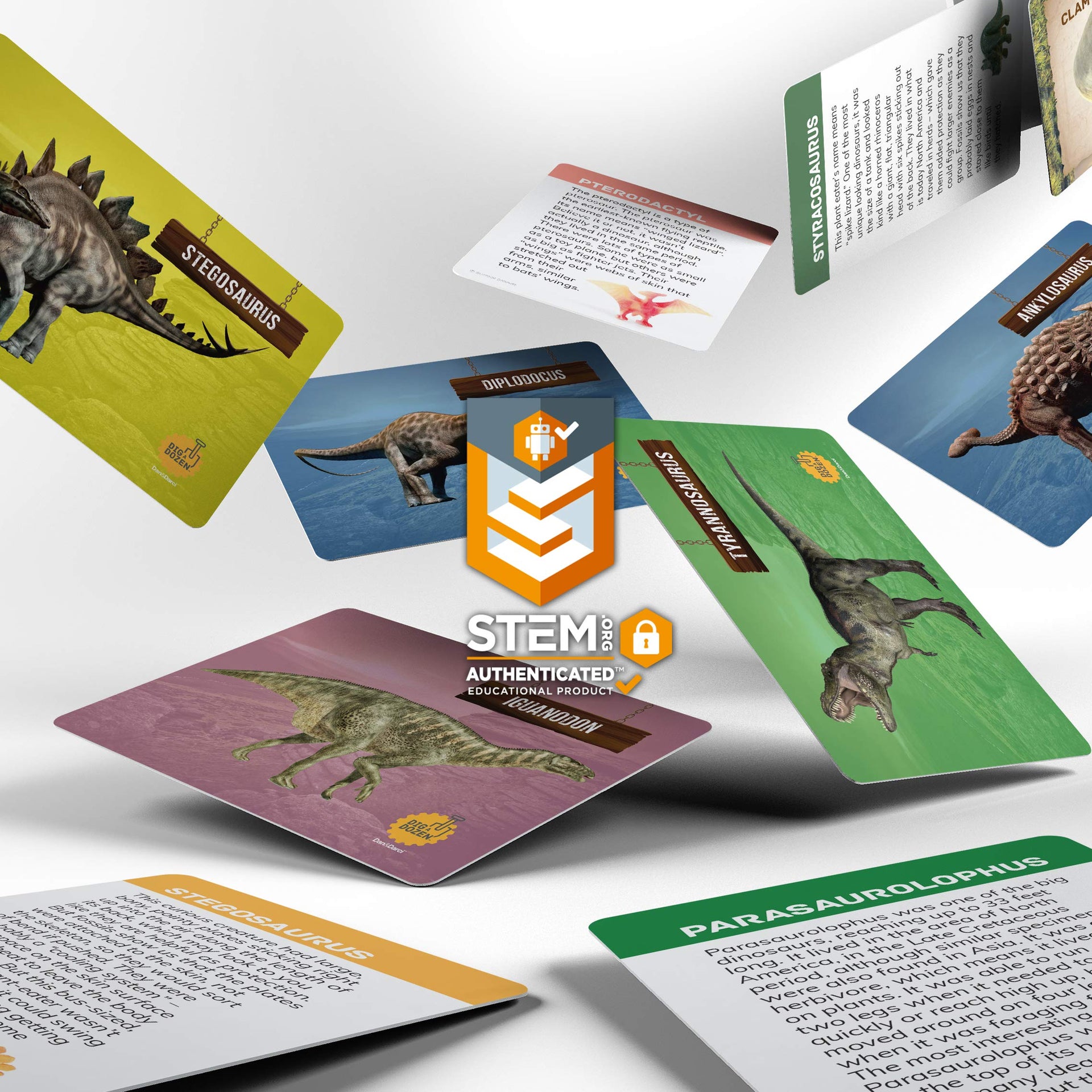 - 12 Full-color Dinosaur Learning Cards: Includes 12 beautiful cards, each describing the history of a different dinosaur. After digging up a dino, try to match up the appropriate card to your dinosaur and learn more about it.