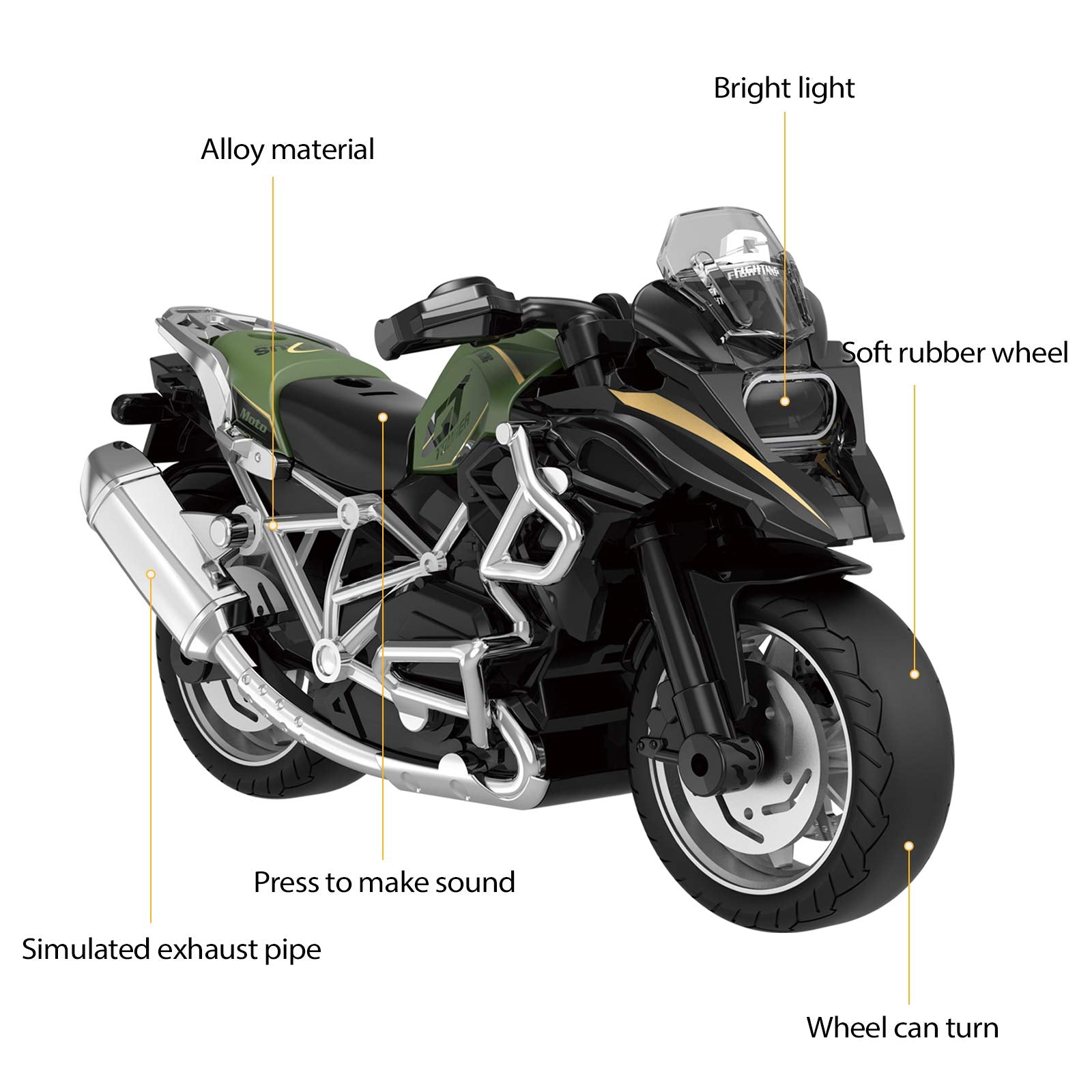 Diecast Motorcycle Toy - Pull Back Toy Cars with Sound and Light Toy,Motorcycle Toys for Boys,Toys for 3-9 Year Old Boys (White)