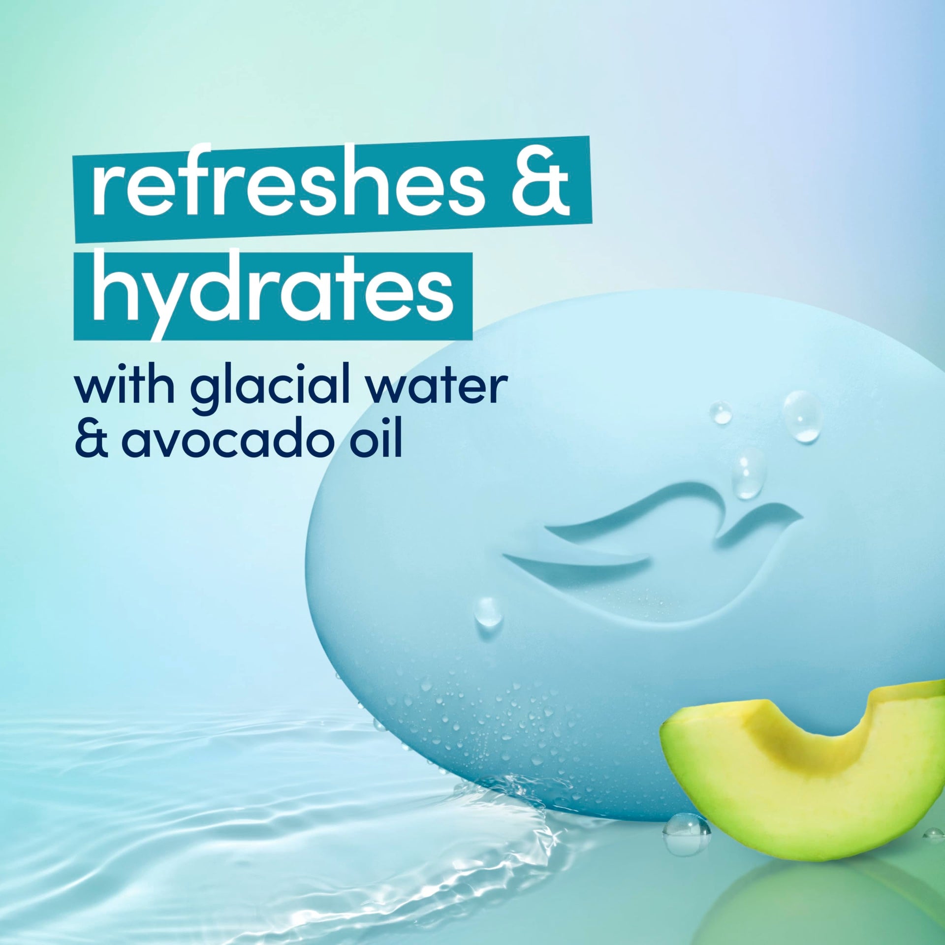 Dove Beauty Bar 6 Pack Hydrating with Glacial water & Avocado oil Cleanses & Hydrates 3.75 Oz