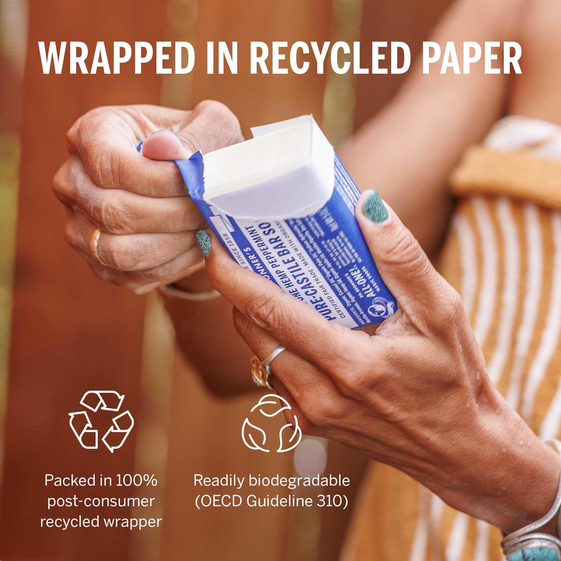 - PACKAGED IN POST-CONSUMER RECYCLED WRAPPERS: Every peppermint soap bar is wrapped in recycled paper, helping reduce landfill waste. Our packaging supports a circular economy and cleaner planet