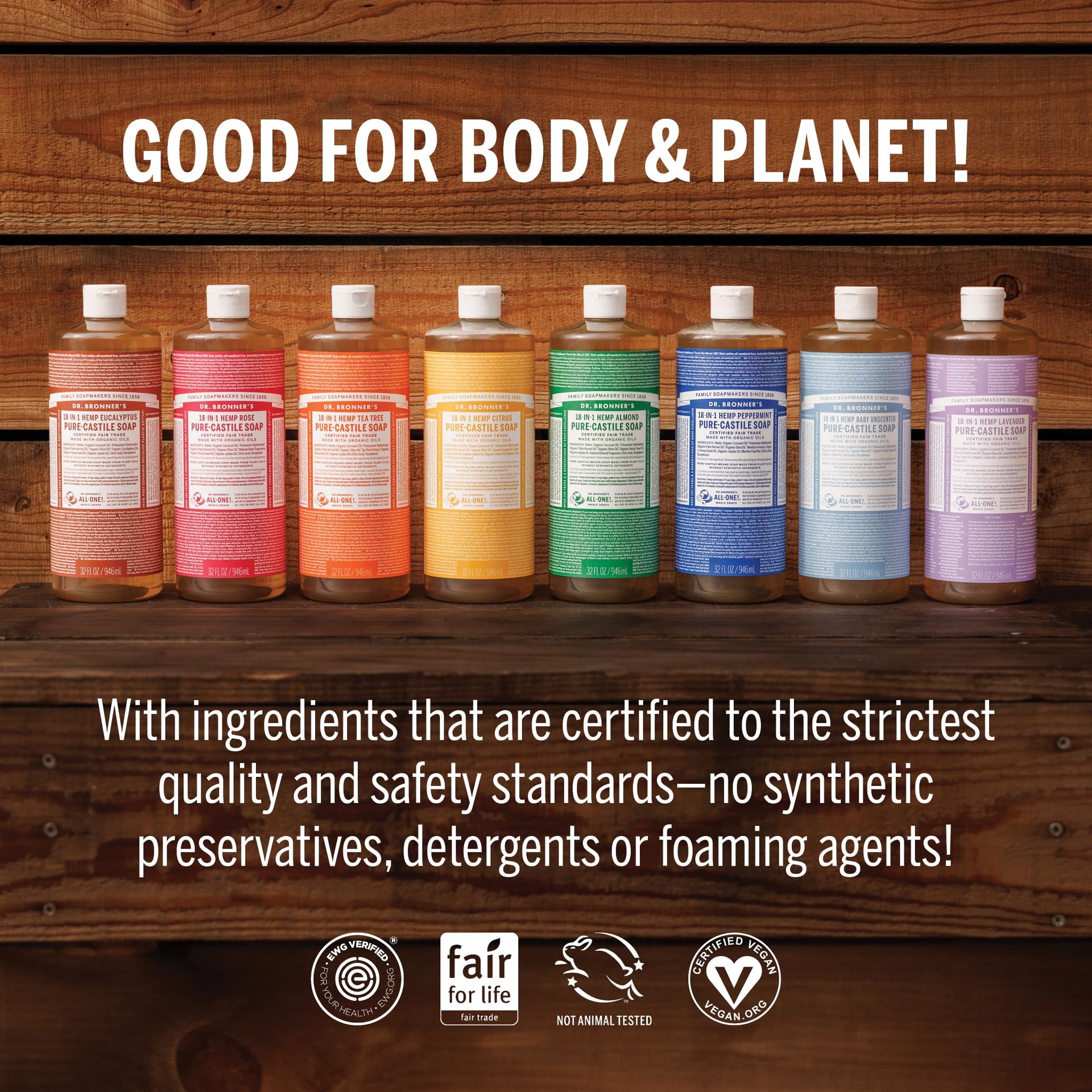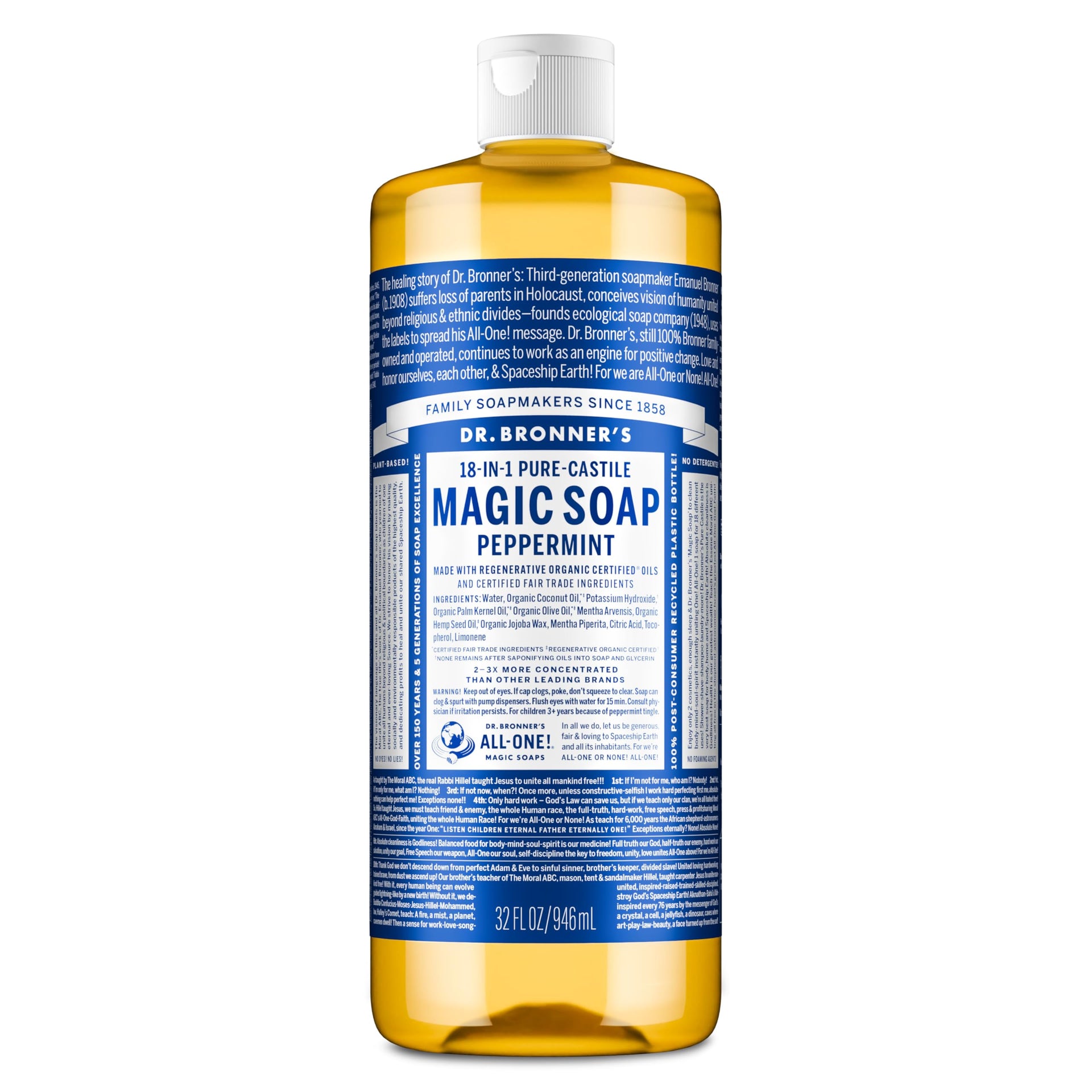 Dr. Bronner's Peppermint Pure-Castile Liquid Soap, 32oz – 18-in-1 Vegan Body Wash for Face, Hair, Hands, Laundry & More, Non-GMO