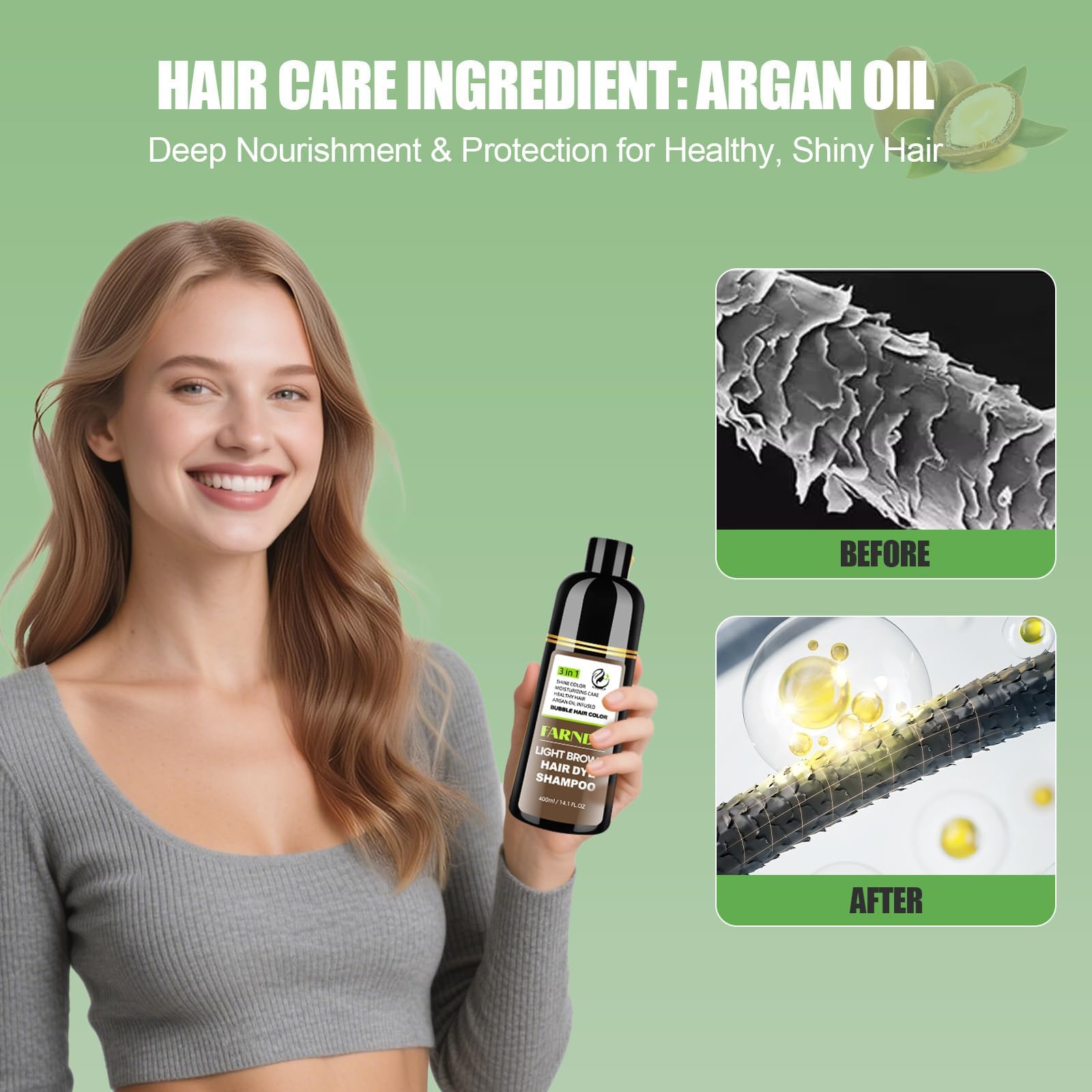 - So Easy, You’ll Love Coloring Your Hair: Ditch the messy bowls and brushes! Use it like your daily shampoo, 1️⃣ Apply to dry hair (no prep needed!). 2️⃣ Massage for 5 minutes. 3️⃣ Wait 10–15 mins—binge a show, sip coffee, you do you! 4️⃣ Rinse and flaunt that natural, vibrant Light Brown!