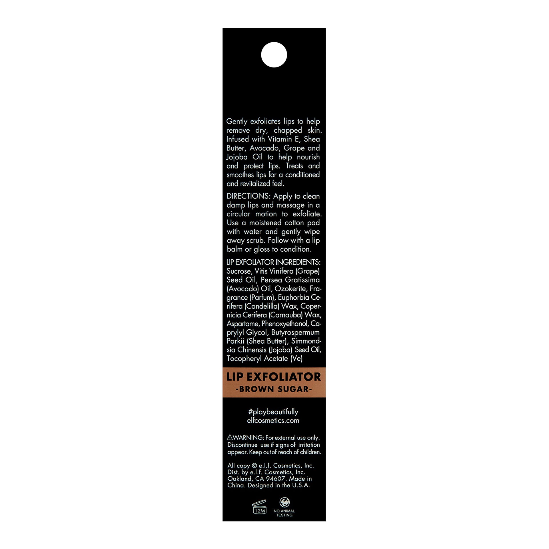 Details: The Lip Exfoliator is your secret weapon to a flawless face. A sweet sugar and smoothing sensation, infused with Vitamin E, Shea Butter, Avocado, Grape and Jojoba Oils to nourish and protect. Say goodbye to rough, chapped lips and hello to a soft pout. This exfoliator preps lips for your favorite lipstick and liner for an e.l.f.ing amazing smile.