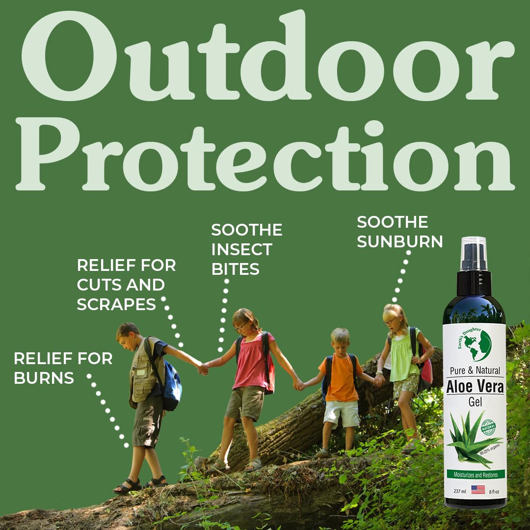 Earth's Daughter Organic Aloe Vera Gel, 100% Pure Cold-Pressed - Soothes Face, Hair, Acne, Sunburn, Bug Bites, Rashes & Eczema, 8oz