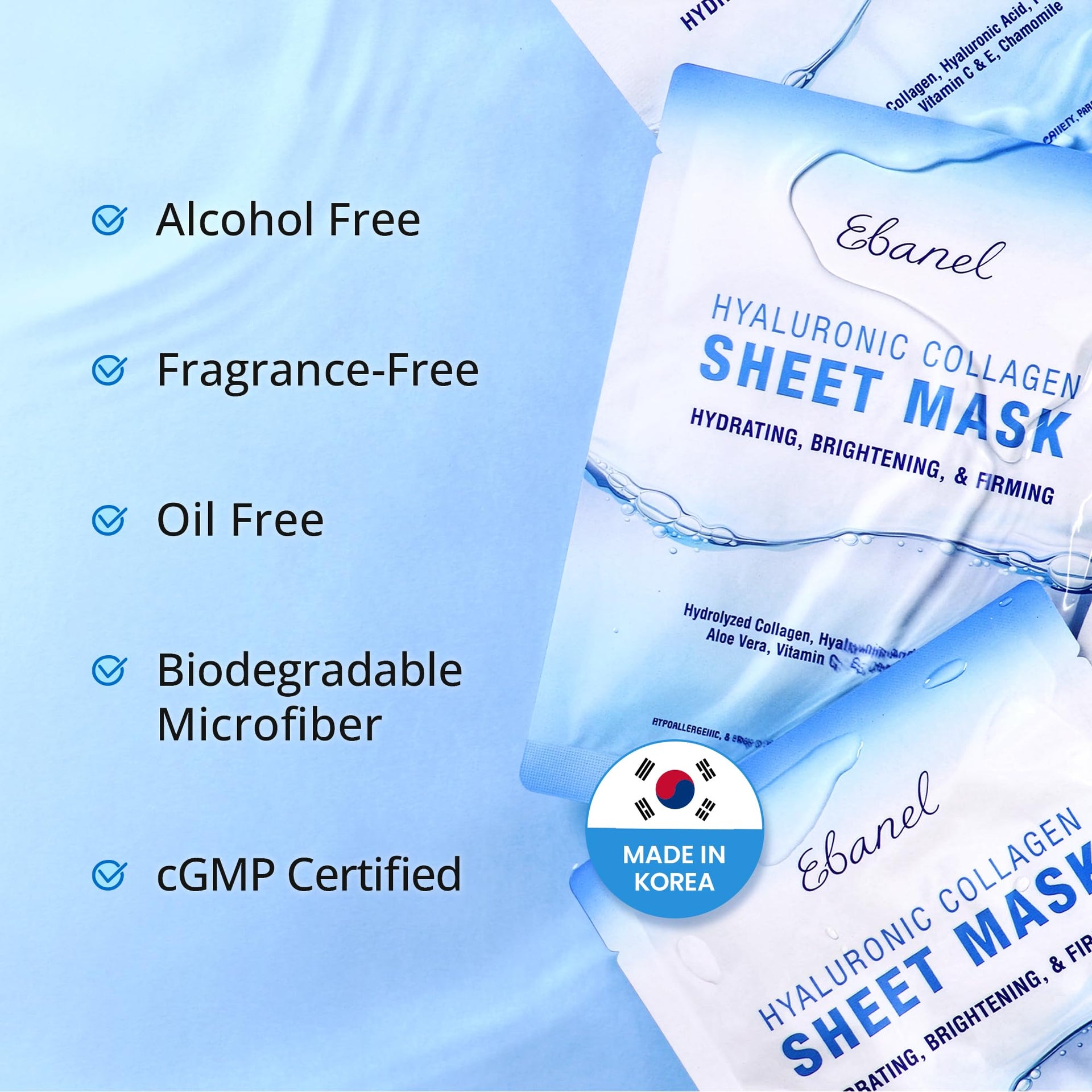 Ebanel 10-Pack Collagen Sheet Masks – Hyaluronic Acid, Vitamin C, Peptides & Aloe for Hydrating, Brightening, Firming & Anti-Aging