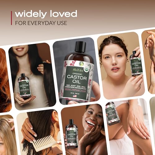 Ella & Eden Castor Oil Organic – Cold Pressed Hexane-Free Unrefined Glass Bottle | For Hair Growth, Face, Skin | USDA Certified 100% Pure – 16 Oz