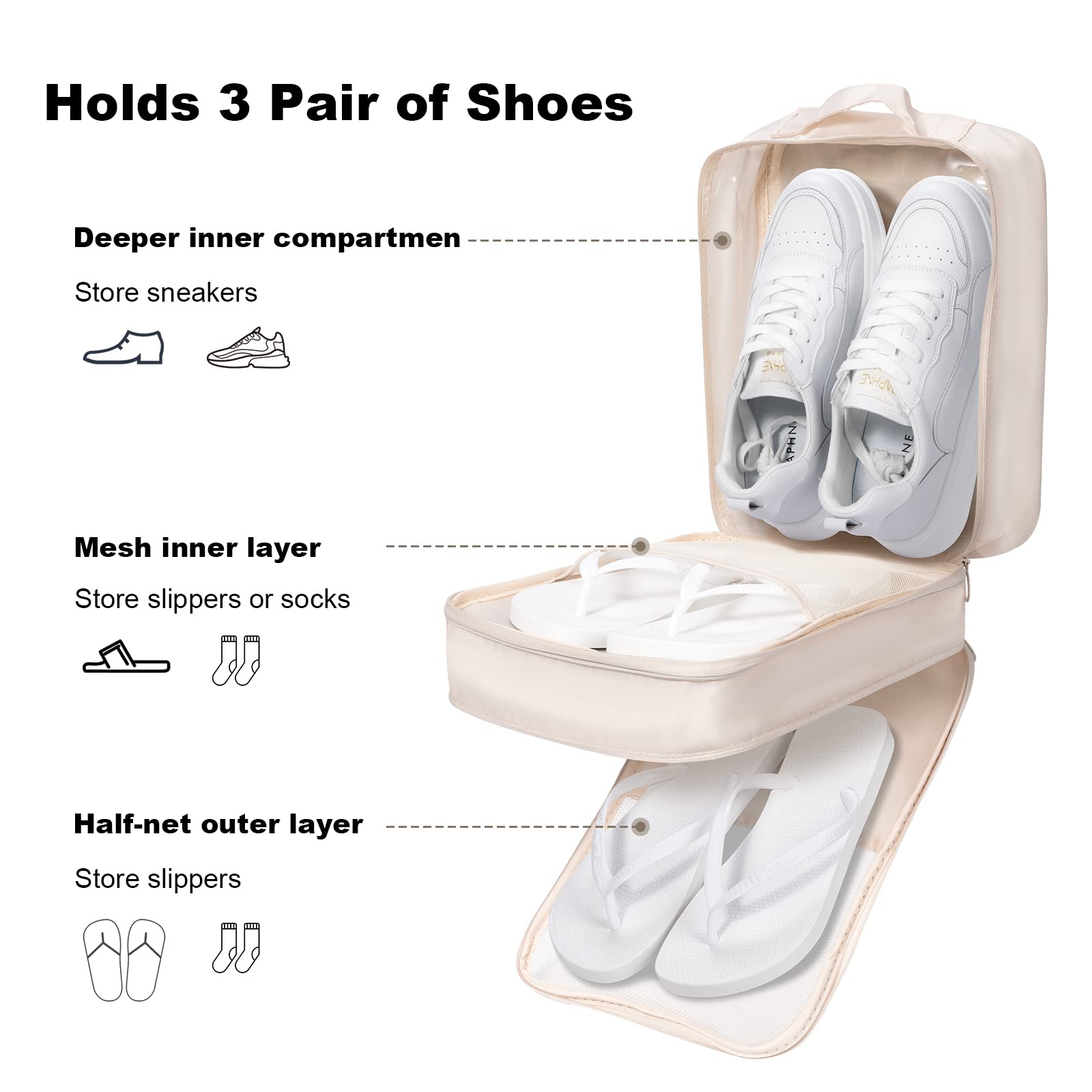 - 【Travel Size for Suitcase】With 11.8"L x 8.7" W x 5.5" H dimension, this travel bag can take in most of your shoes for travel like sandals, sneakers, high heels, running shoes, slippers, etc. It’s also a suitable size for luggage case, which you can put it inside or hung it up on pull rod.