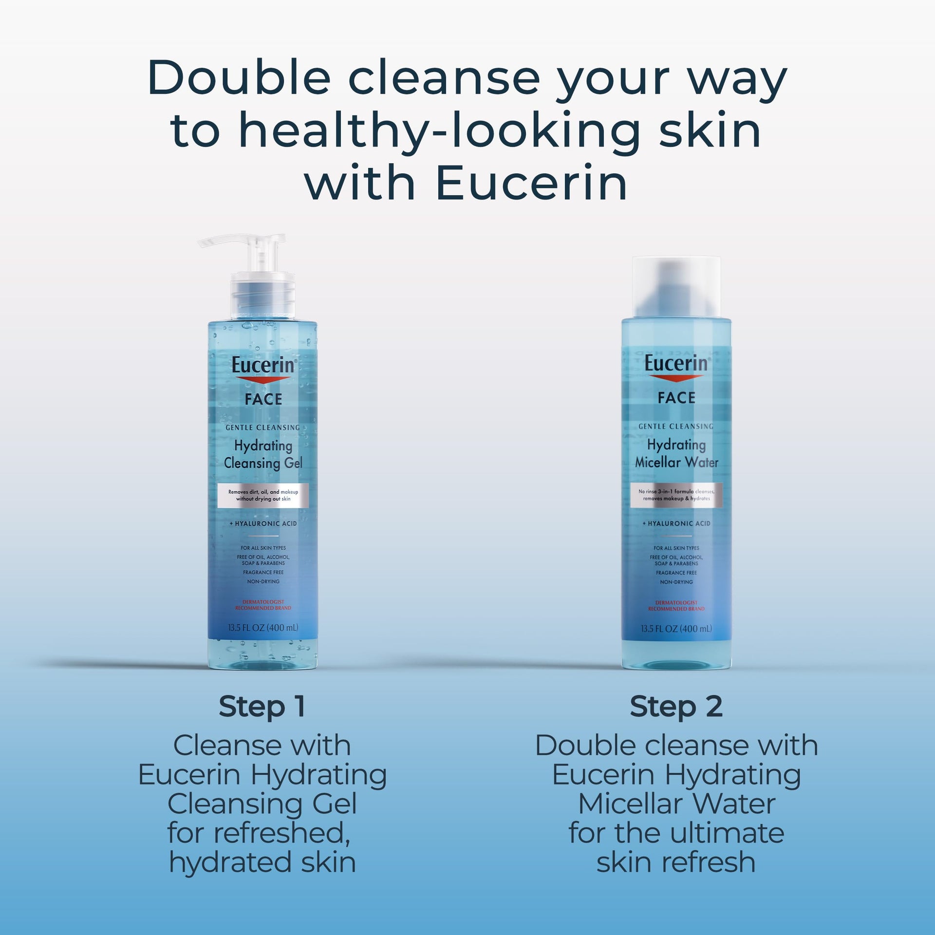 Details: Eucerin Face Gentle Cleansing Hydrating Cleansing Gel is a gentle, effective facial cleanser enriched with Hyaluronic Acid to help support the skin’s moisture balance. Formulated with APG Cleansing Complex, this low-lather gentle face wash removes dirt, oil, and makeup without stripping skin—leaving skin soft and refreshed. Our refreshing gel cleanser respects the skin's moisture barrier while providing a thorough cleanse for revitalized skin. Eucerin skin cleanser and makeup remover is suitable for all skin types, even sensitive skin. The hydrating face wash is free of oil, alcohol, soap and parabens, as well as fragrances. Eucerin is a dermatologist-recommended skincare brand that is based on an uncompromising approach to science, with skin care products formulated to restore and sustain healthy-looking skin.