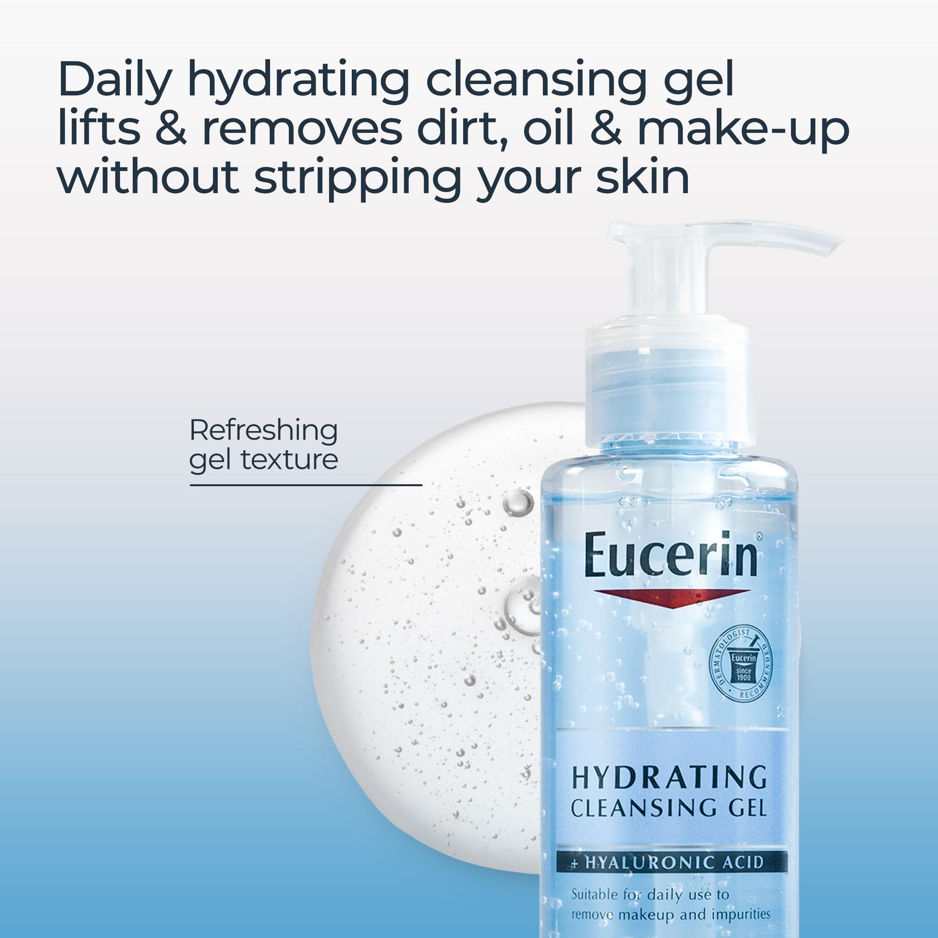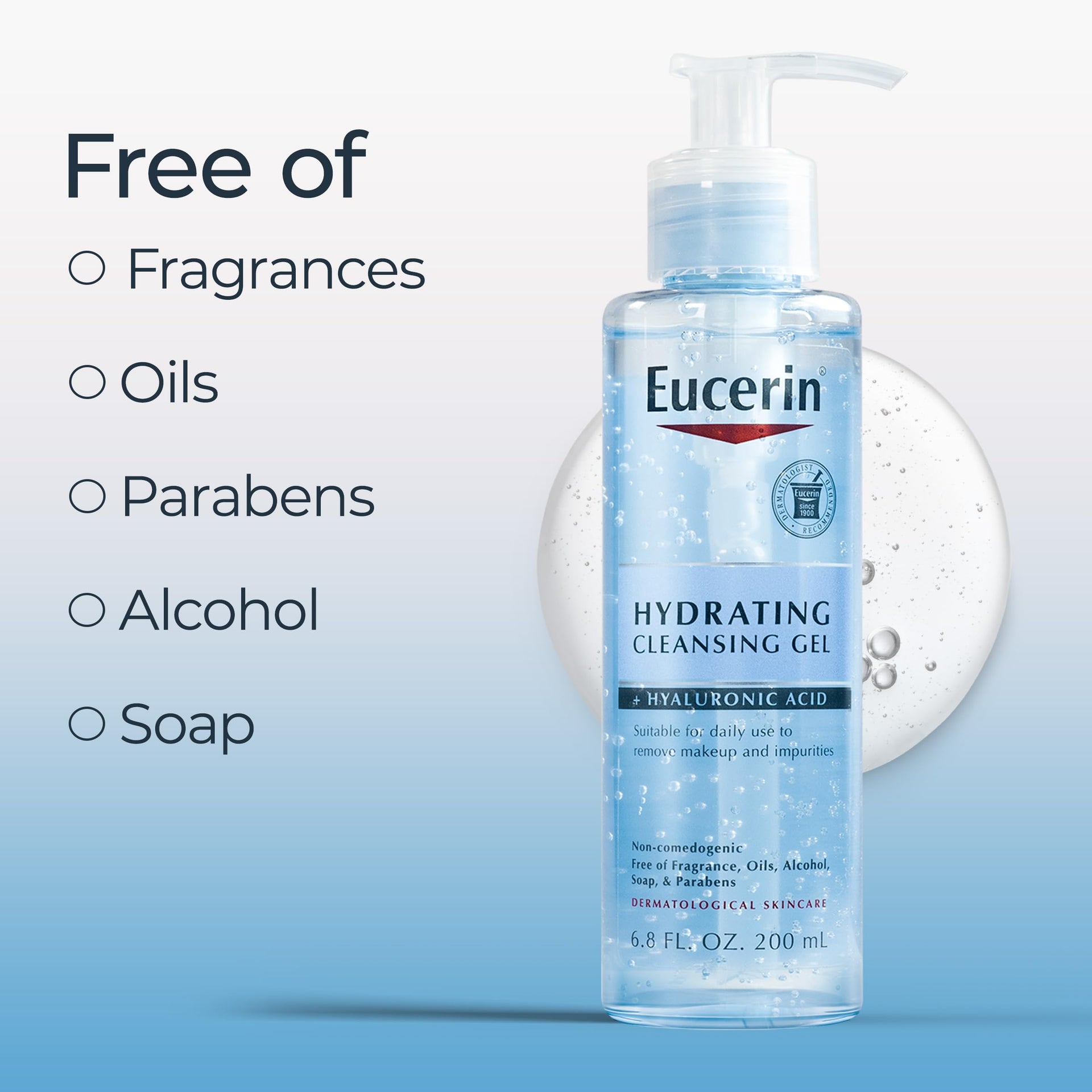 Eucerin Hydrating Cleansing Gel, Daily Face Wash and Makeup Remover Formulated with Hyaluronic Acid, 6.8 Fl Oz Bottle