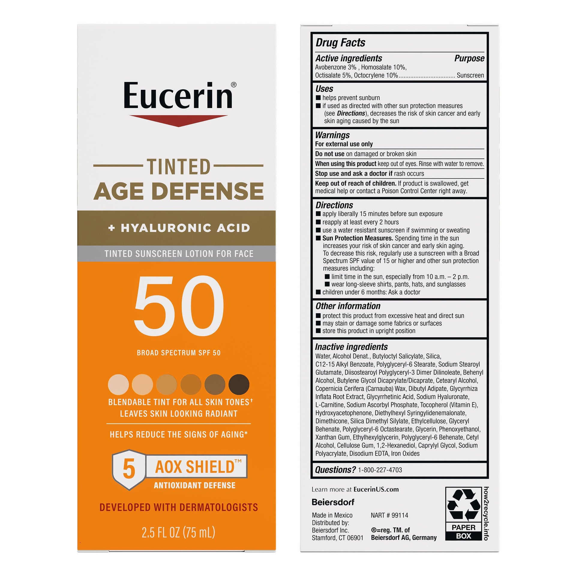 Eucerin Sun Tinted Age Defense Face Sunscreen SPF 50 with Hyaluronic Acid – Blendable Tint for All Skin Tones, Non-Comedogenic, 2.5 fl oz