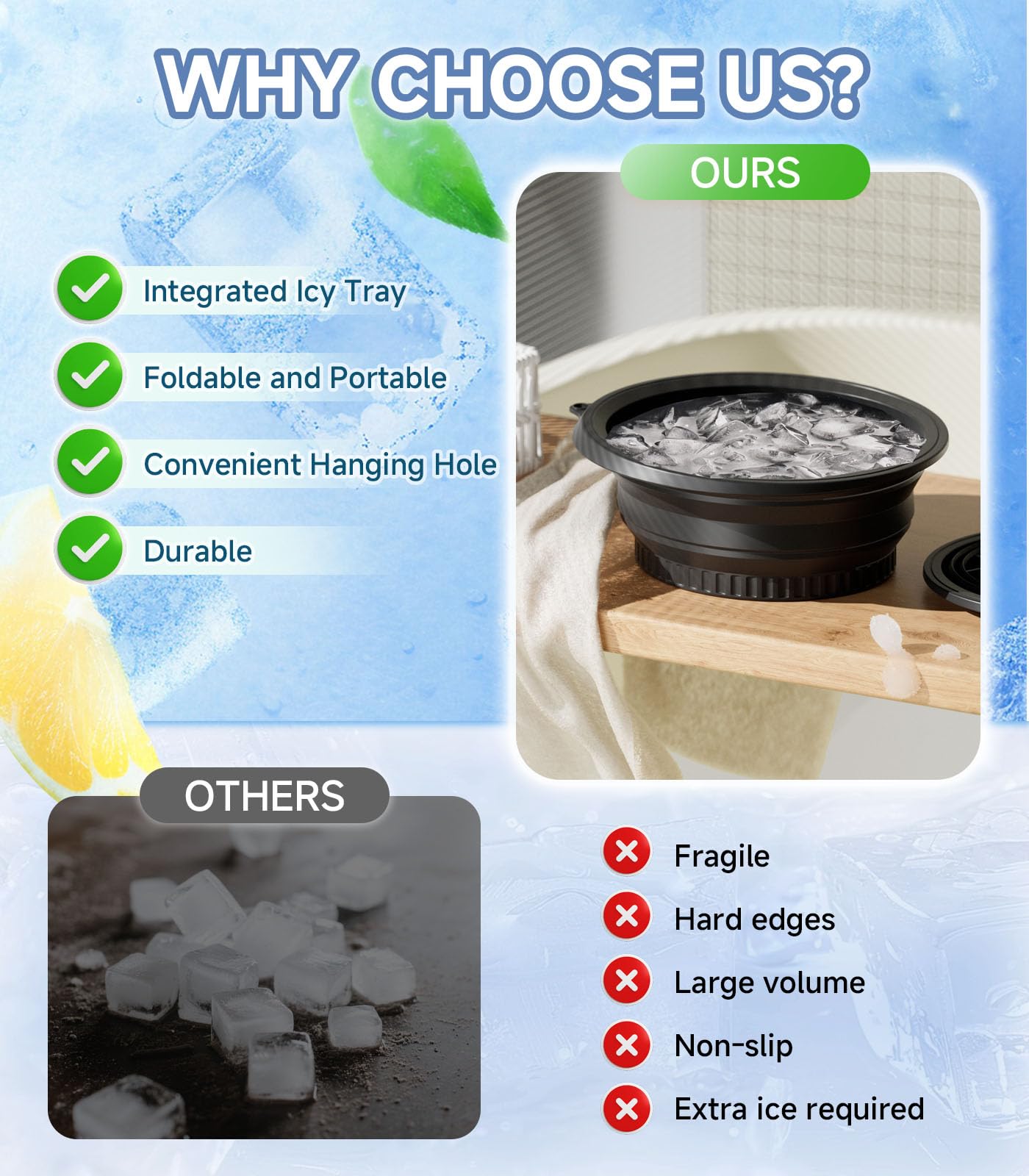Collapsible Silicone Face Ice Bowl with Built-In Tray – Cold Plunge Therapy for Skin Tightening, Acne Relief & Home Spa (Black)